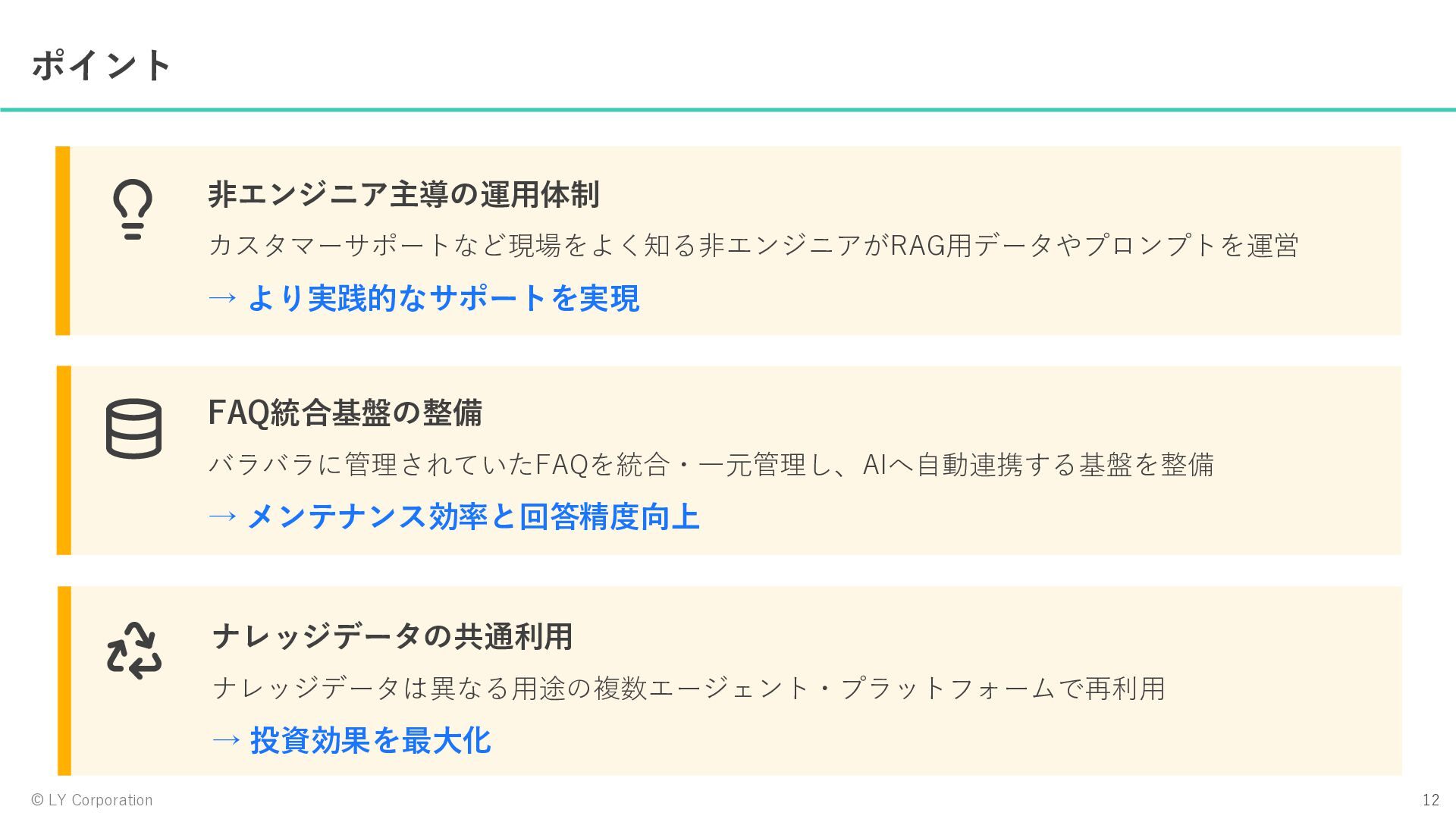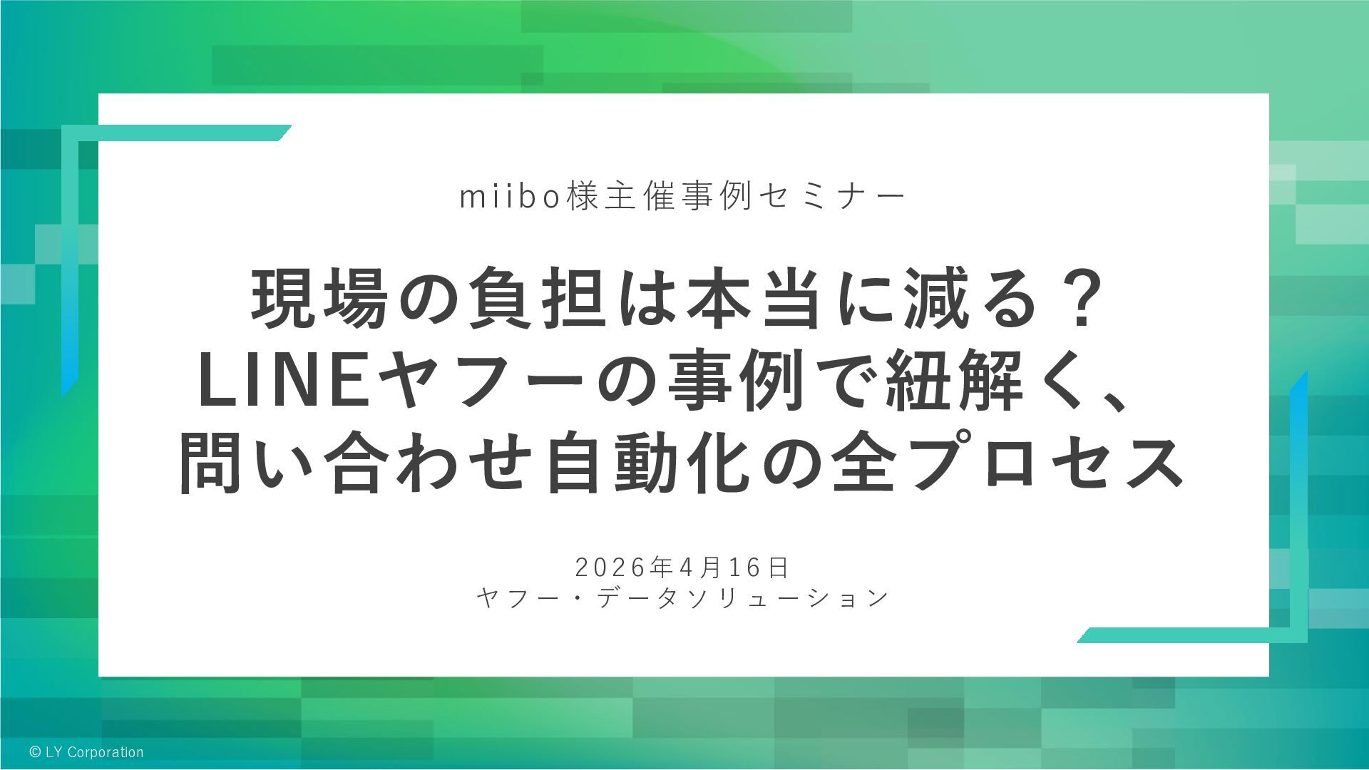 2026年4月16日に開催されたmiibo社様主催セミナー「現場の負担は本当に減る?LINEヤフーの事例で紐解く、問い合わせ自動化の全プロセス」での発表資料です。