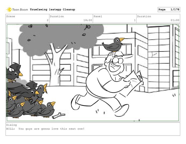 Scene 2 Duration 18:00 Panel 3 Duration 01:00 Dialog BILL: