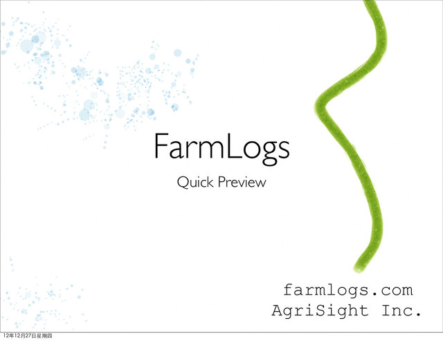 FarmLogs Quick Preview farmlogs.com AgriSight Inc. 12年12月27⽇日星期四