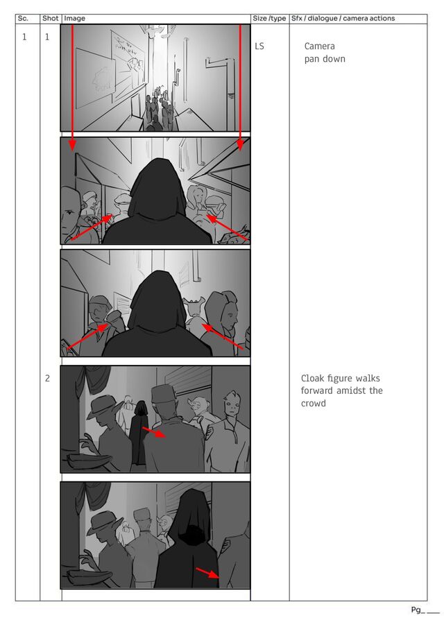 man reaches for the cloaked figure. At the contact, the cloaked figure whips around to shove the delivery man back Close up shot (CS) The delivery man falls to the floor and a red lightsaber is activated by the cloaked figure. Medium close up (MCU) ? VFX: SCHVOOM! *a lightsaber is activated* The delivery man stares in horror at the lightsaber.