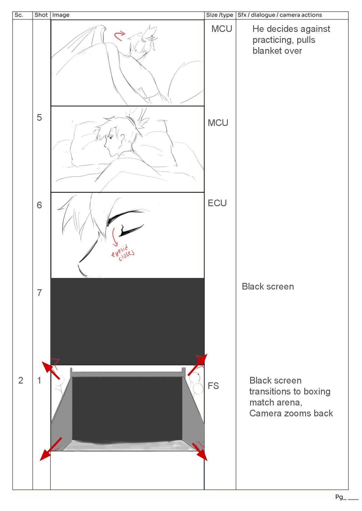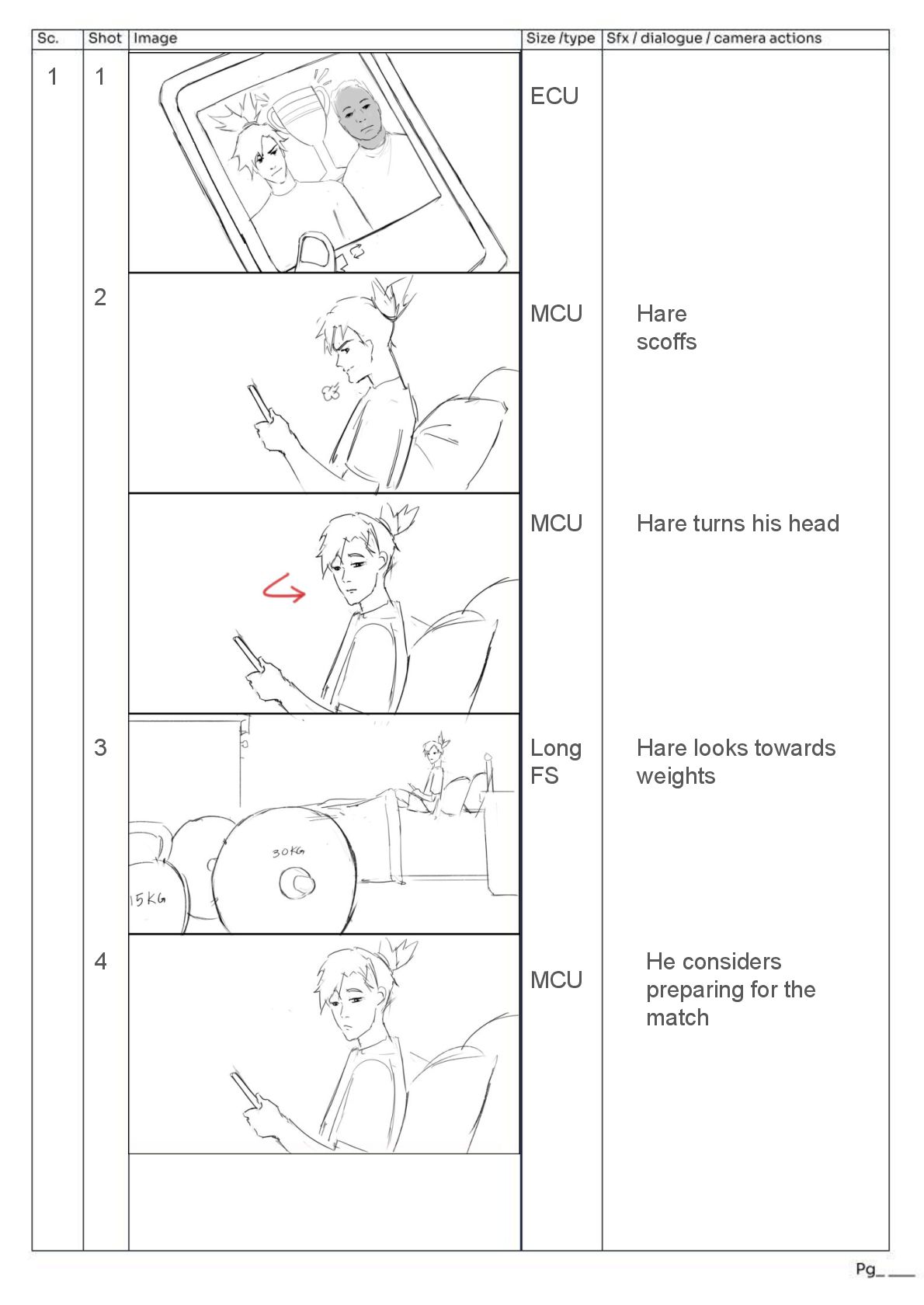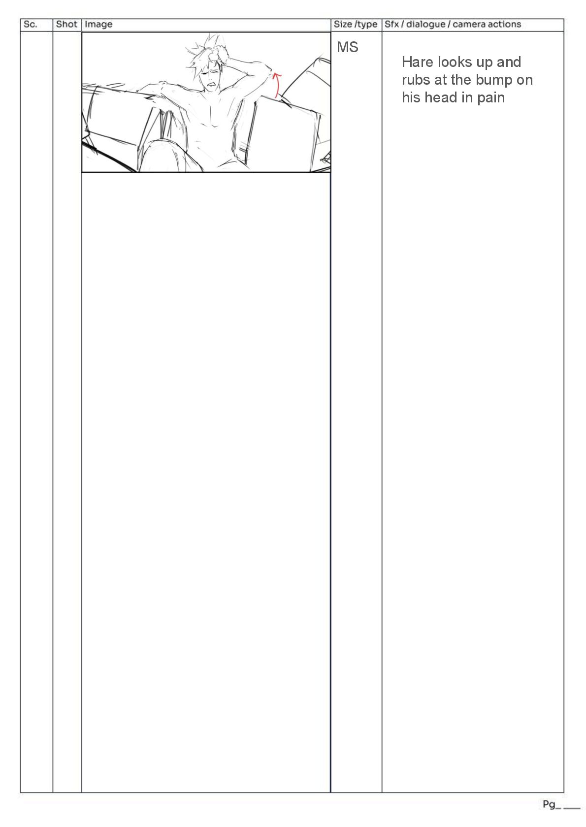 pans ECU of hand, hand pulls robe away quickly upwards from a low angle → indication of power Over the shoulder view of tortoise removing arm weight *SFX LOUD THUMP* Fast zoom to next frame of hare’s face
