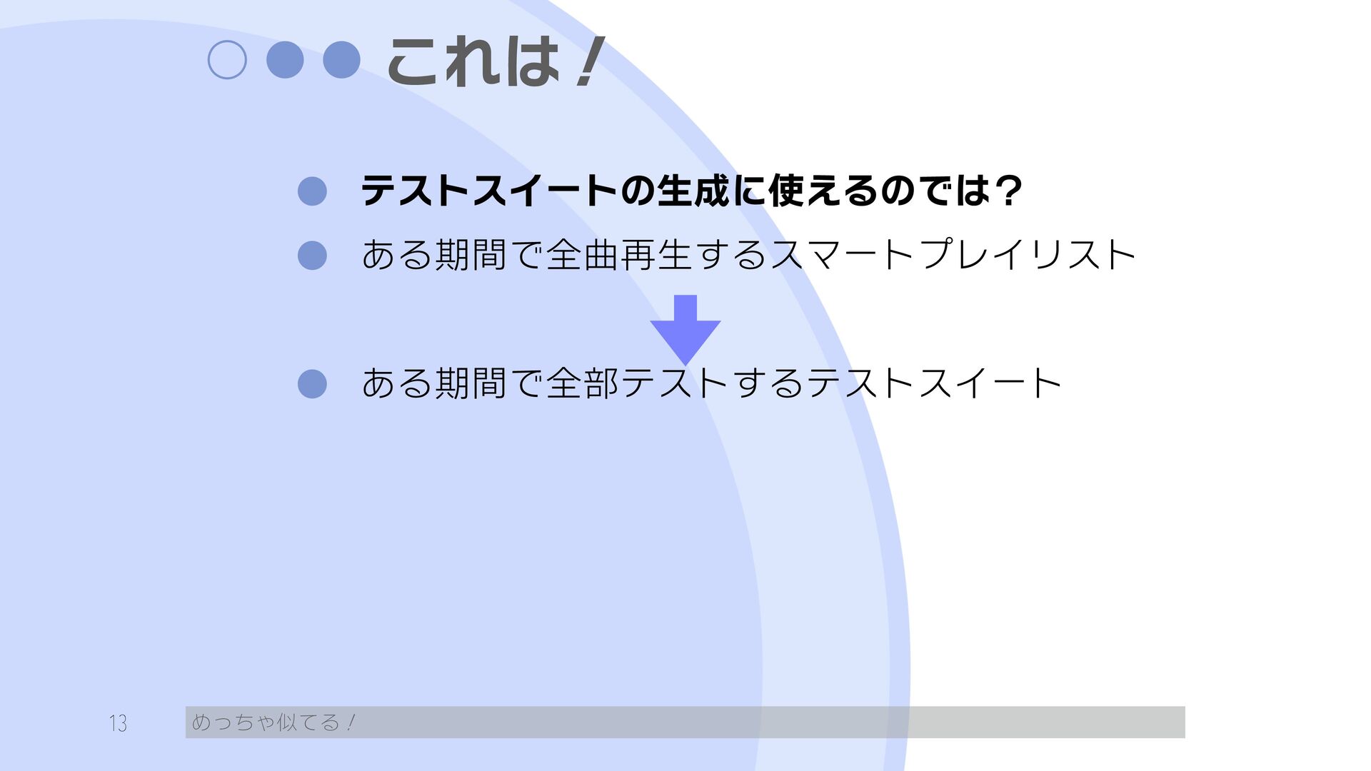 これは! めっちゃ似てる! 13 テストスイートの生成に使えるのでは? ある期間で全曲再生するスマートプレイリスト ある期間で全部テストするテストスイート