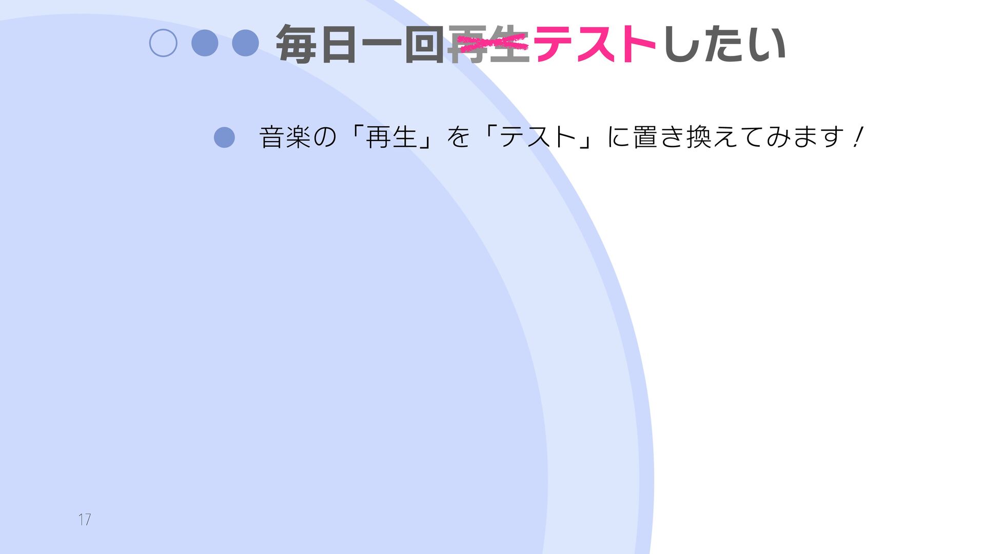 毎日一回再生テストしたい 17 音楽の「再生」を「テスト」に置き換えてみます!