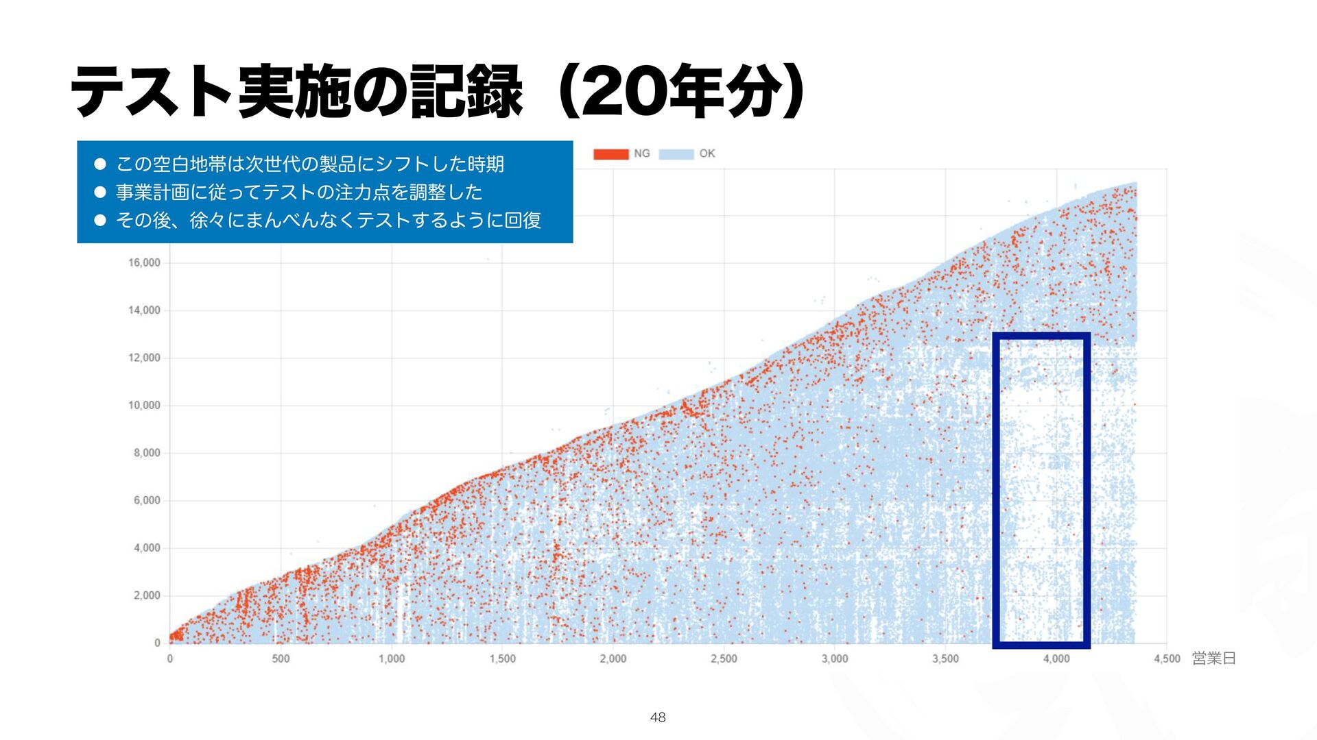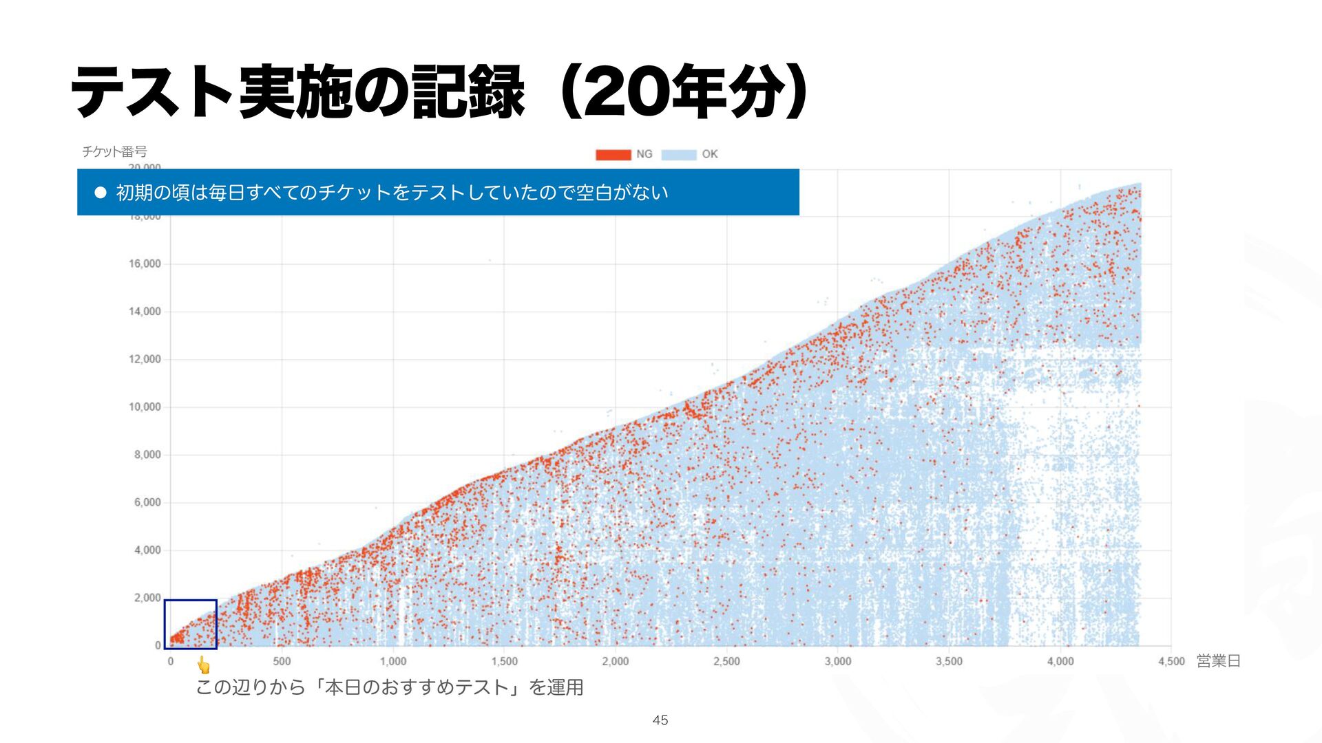 ςετ࣮ࢪͷهʢʣ ʢΞϧΰϦζϜͱผʹɺऑ͍෦νέοτՃ͞ΕΔͷͰࣗવͱςετέʔεް͘ͳΔʣ テスト実施の記録(20年分) 57 営業日 チケット番号 September 2023 NGの点はよく見えるように強調しています