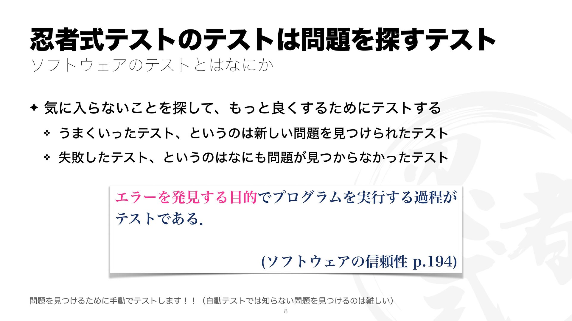 ऀࣜςετͷςετΛ୳͢ςετ ιϑτΣΞͷςετͱͳʹ͔ ✦ ؾʹೖΒͳ͍͜ͱΛ୳ͯ͠ɺͬͱྑ͘͢ΔͨΊʹςετ͢Δ ✤ ͏·͍ͬͨ͘ςετɺͱ͍͏ͷ৽͍͠Λݟ͚ͭΒΕͨςετ ✤ ࣦഊͨ͠ςετɺͱ͍͏ͷͳʹ͕ݟ͔ͭΒͳ͔ͬͨςετ Λݟ͚ͭΔͨΊʹखಈͰςετ͠·͢ʂʂʢࣗಈςετͰΒͳ͍Λݟ͚ͭΔͷ͍͠ʣ