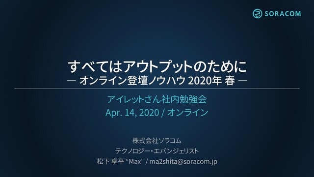 すべてはアウトプットのために ― オンライン登壇ノウハウ 2020年 春 ― アイレットさん社内勉強会 Apr. 14, 2020