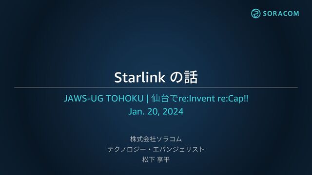 Starlink の話 JAWS-UG TOHOKU | 仙台でre:Invent re:Cap!! Jan. 20, 2024