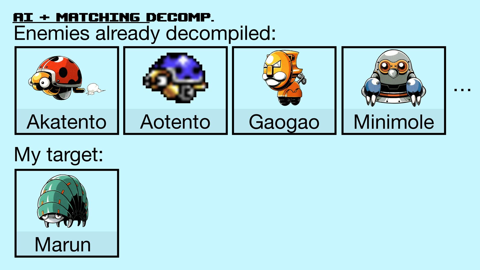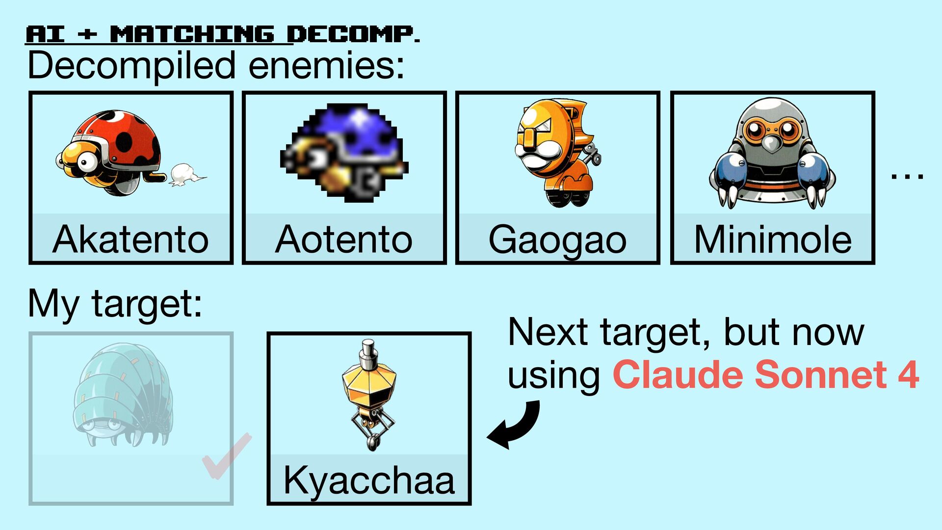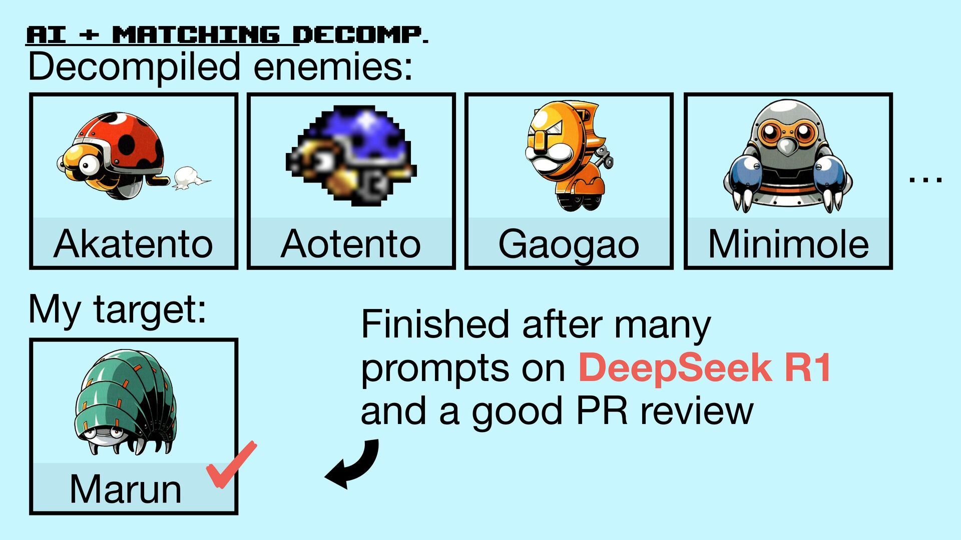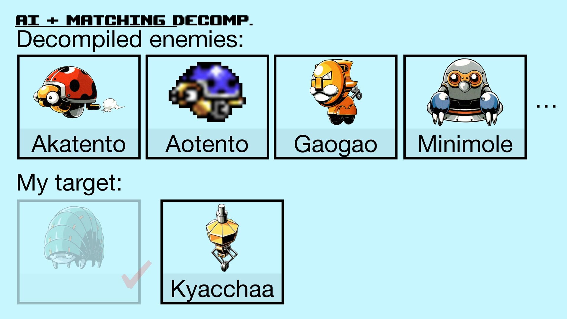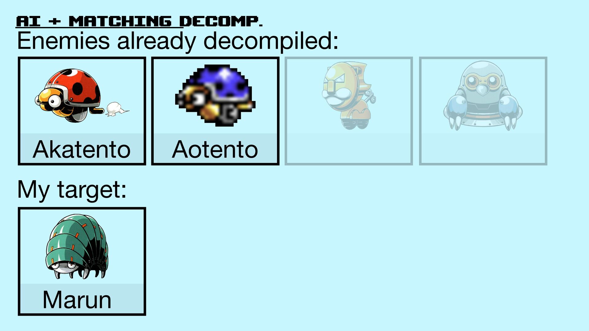 52. AI + matching decomp. Akatento Aotento Decompiled enemies: My target: