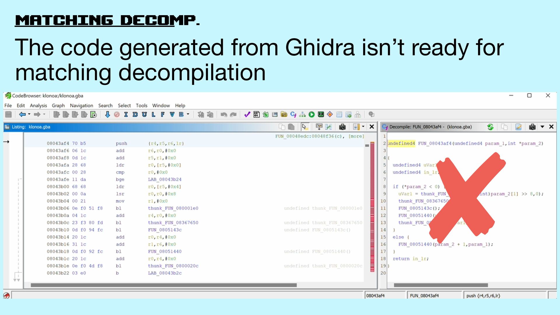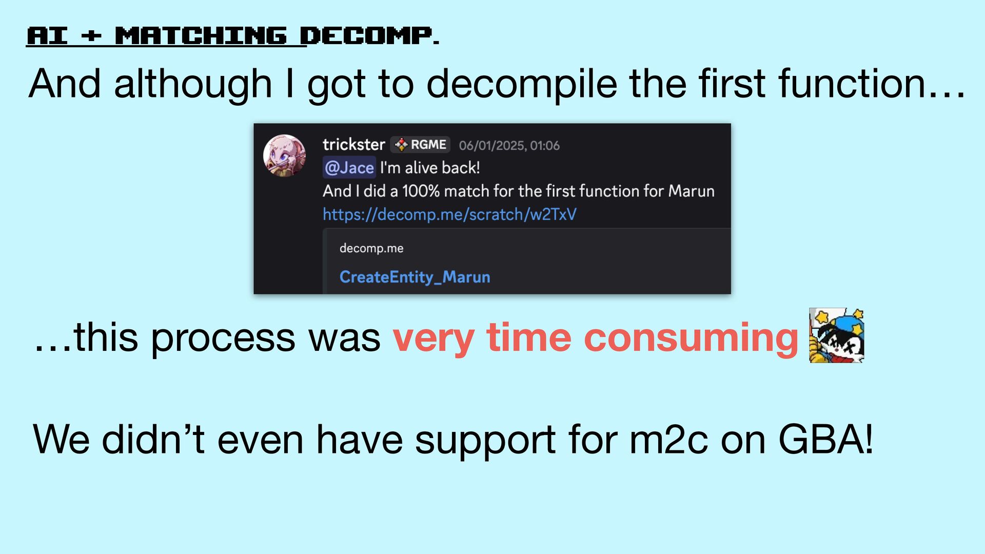 the fi rst function… …this process was very time consuming We didn’t even have support for m2c on GBA!