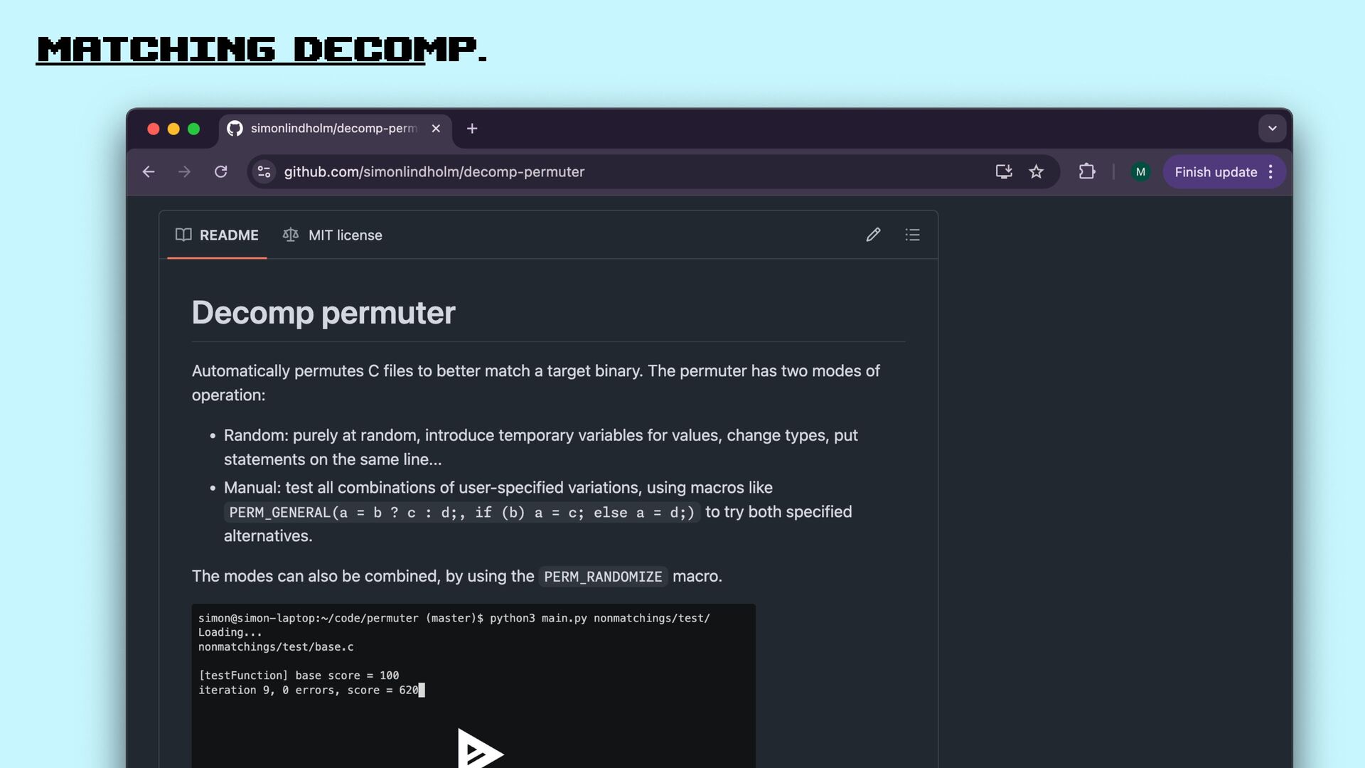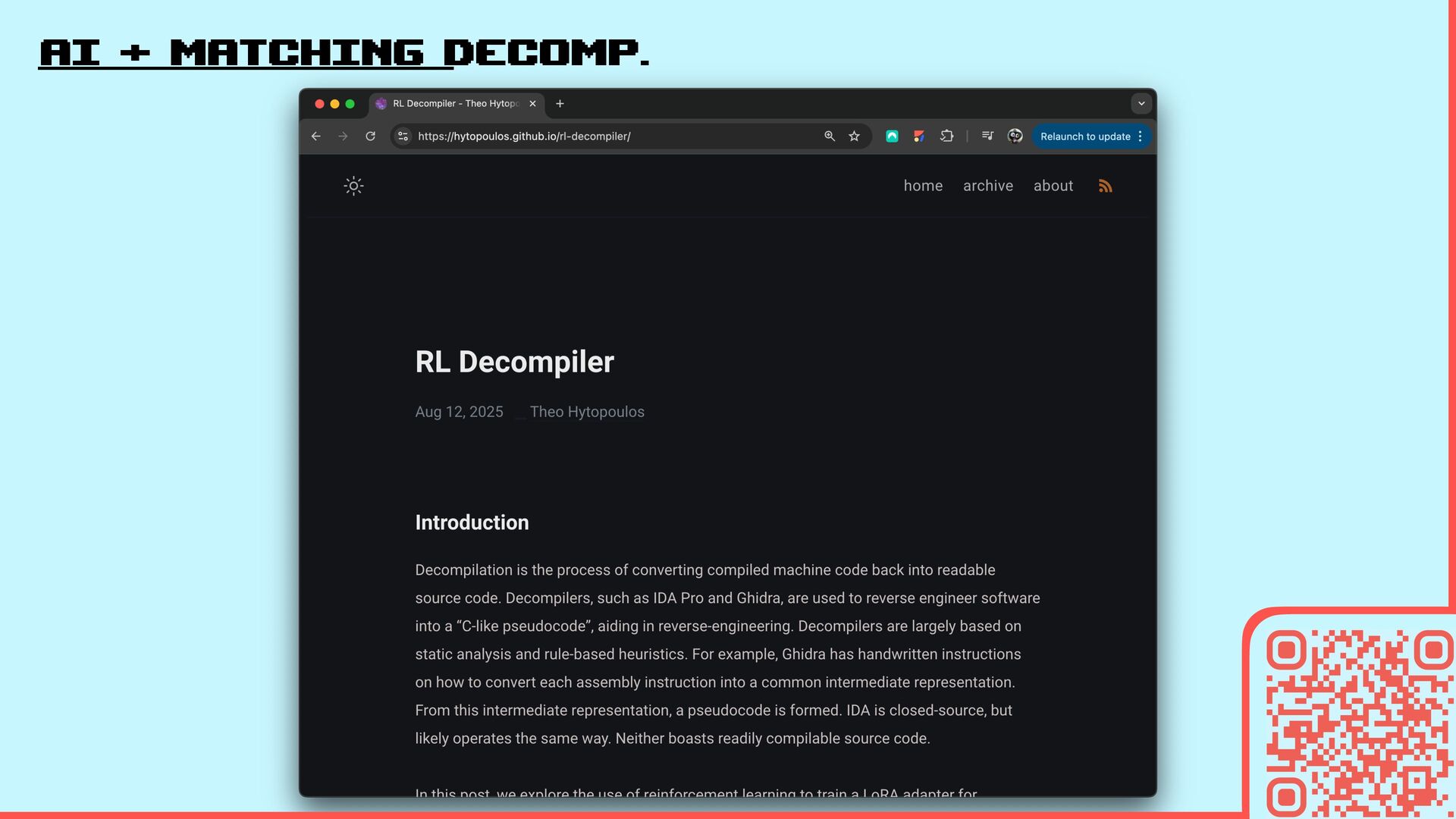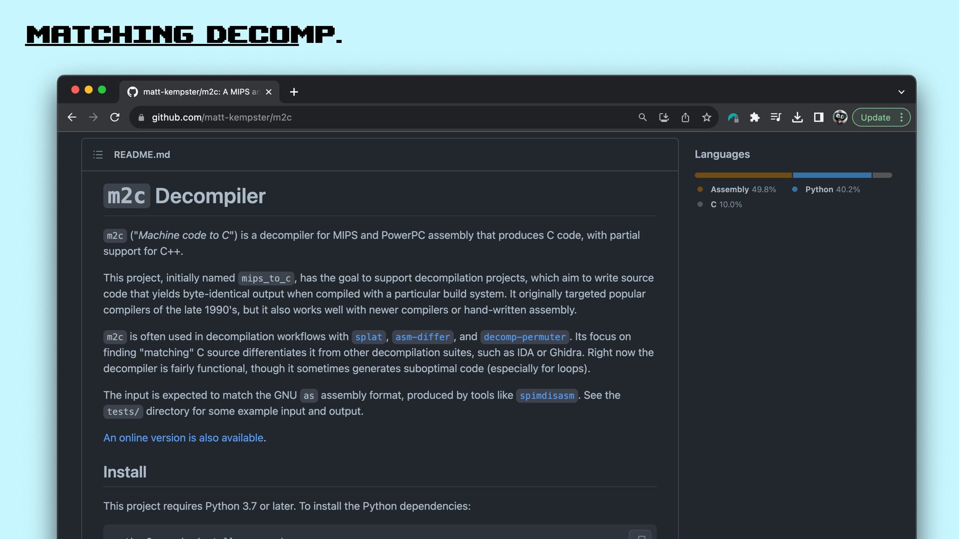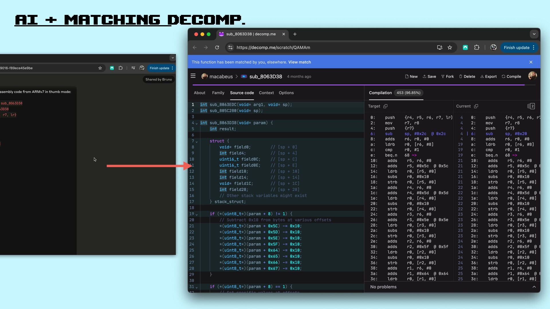 55. AI + matching decomp. It wires decompilation tools on