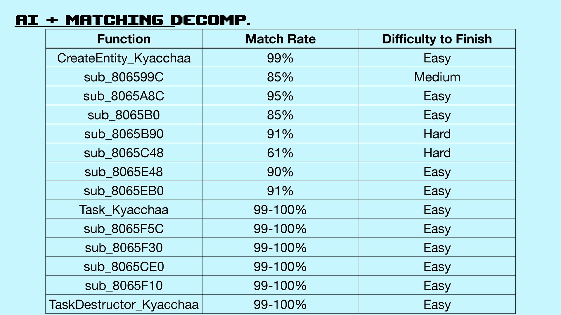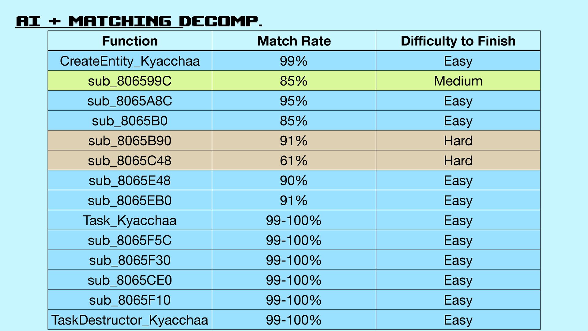 54. AI + matching decomp. Function Match Rate Di ffi culty