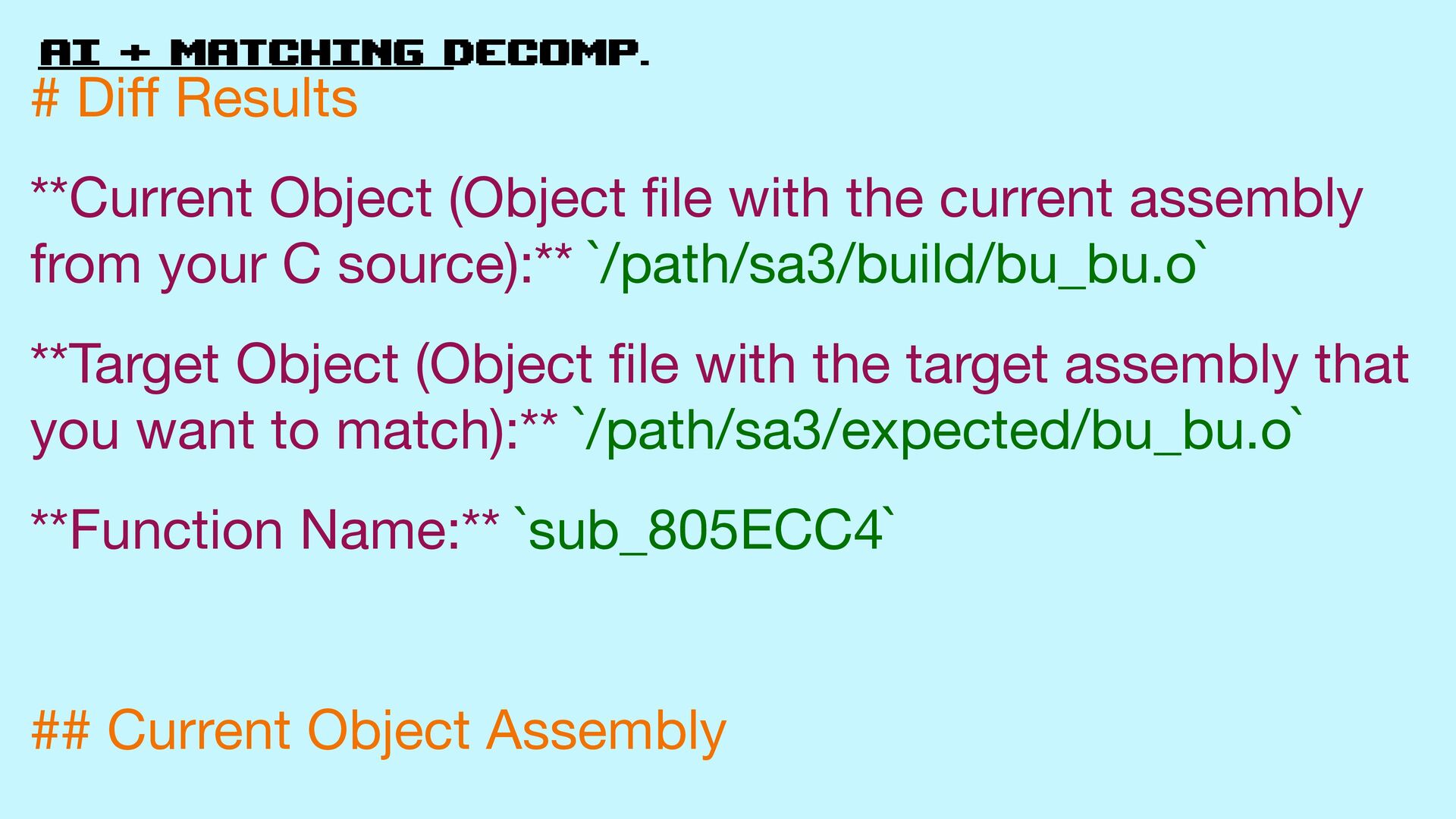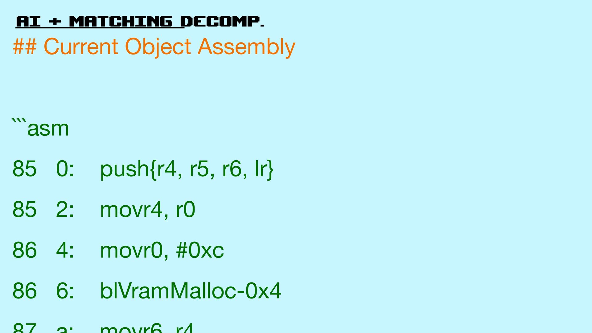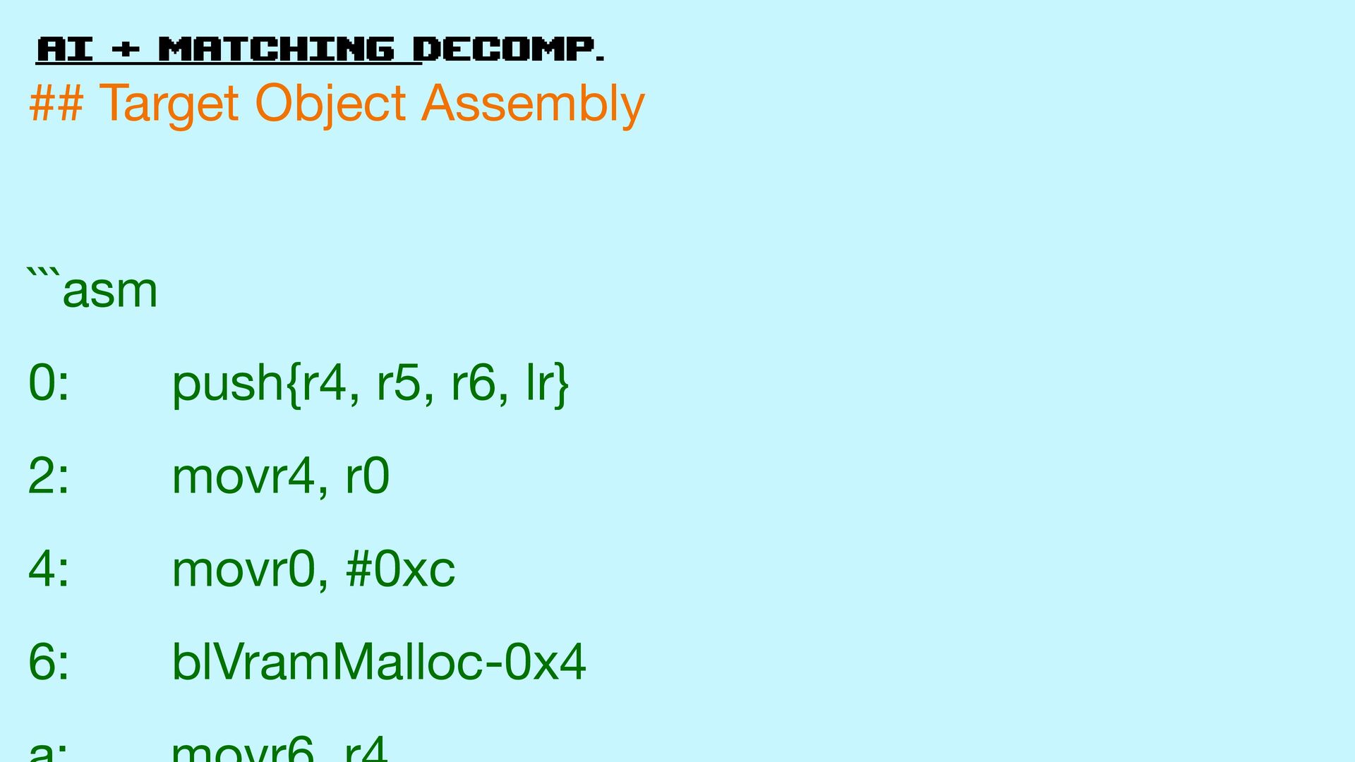 58. AI + matching decomp. ## Target Object Assembly ```asm 0: