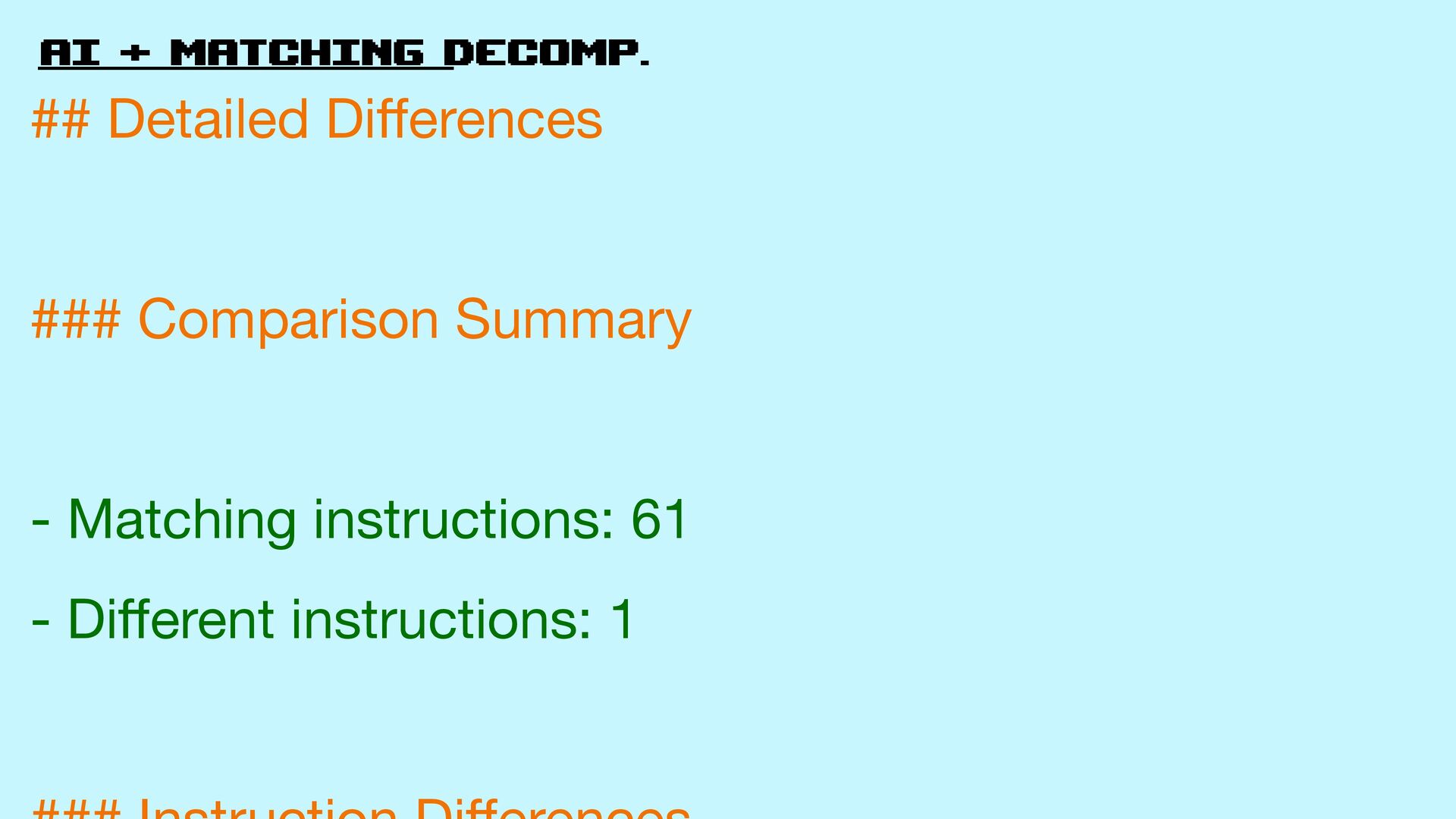 Comparison Summary - Matching instructions: 61 - Di ff erent instructions: 1 ff