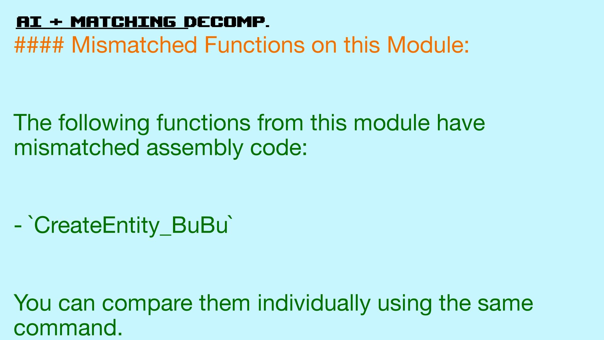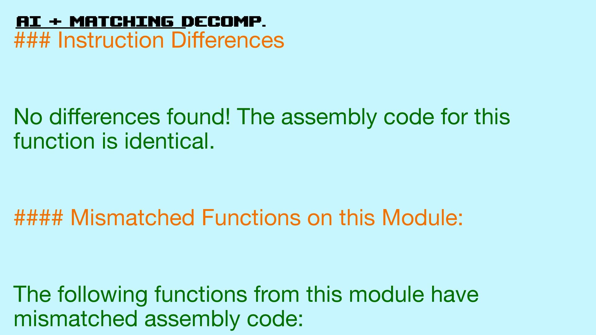 62. AI + matching decomp. #### Mismatched Functions on this Module: