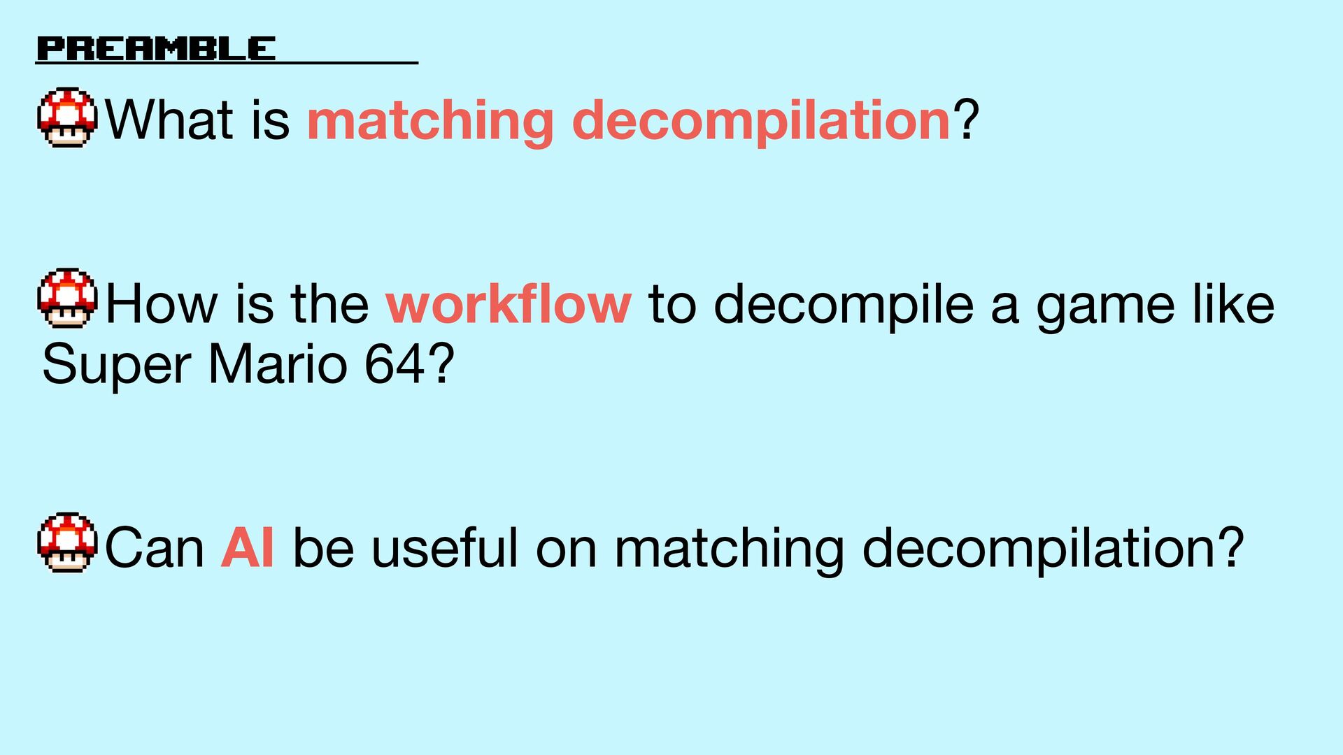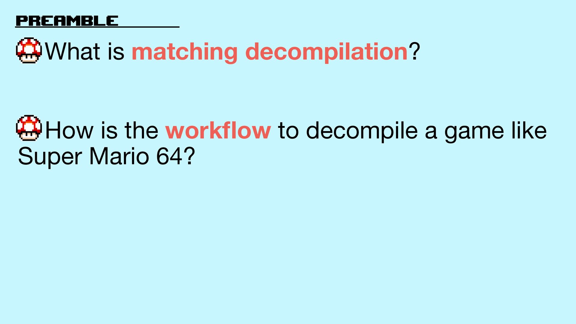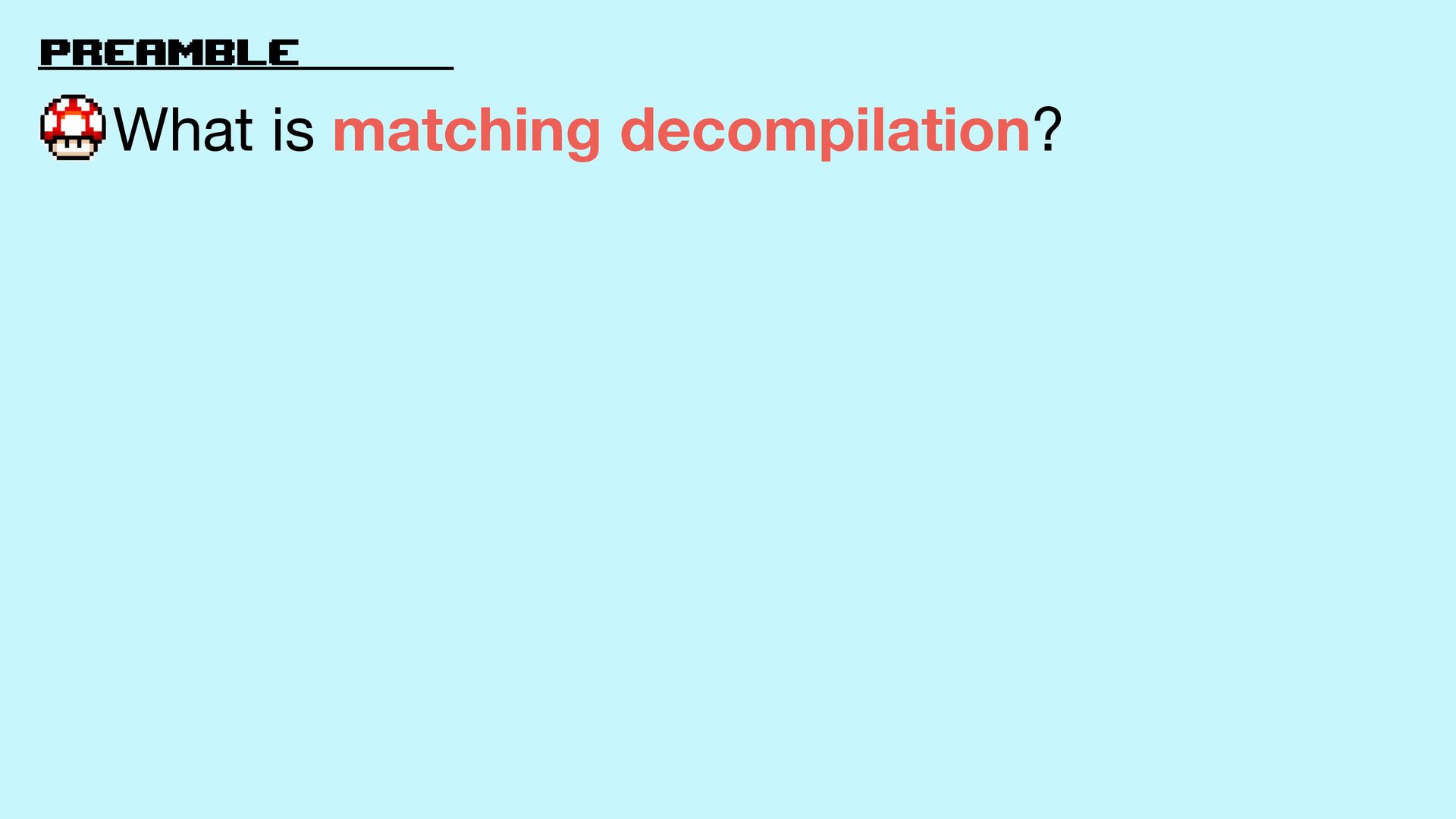 3. preamble What is matching decompilation? How is the work fl