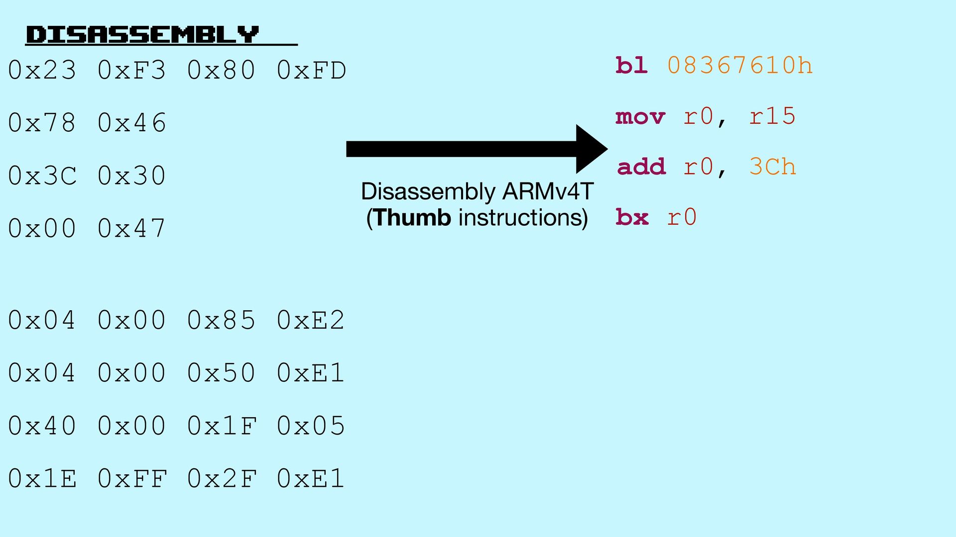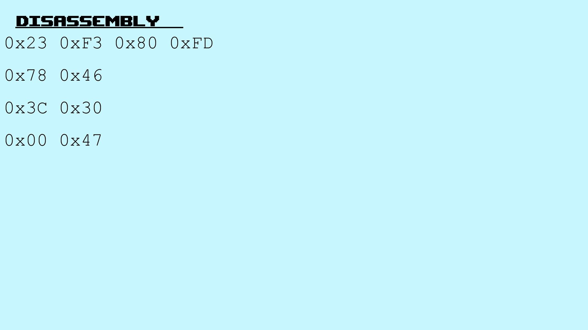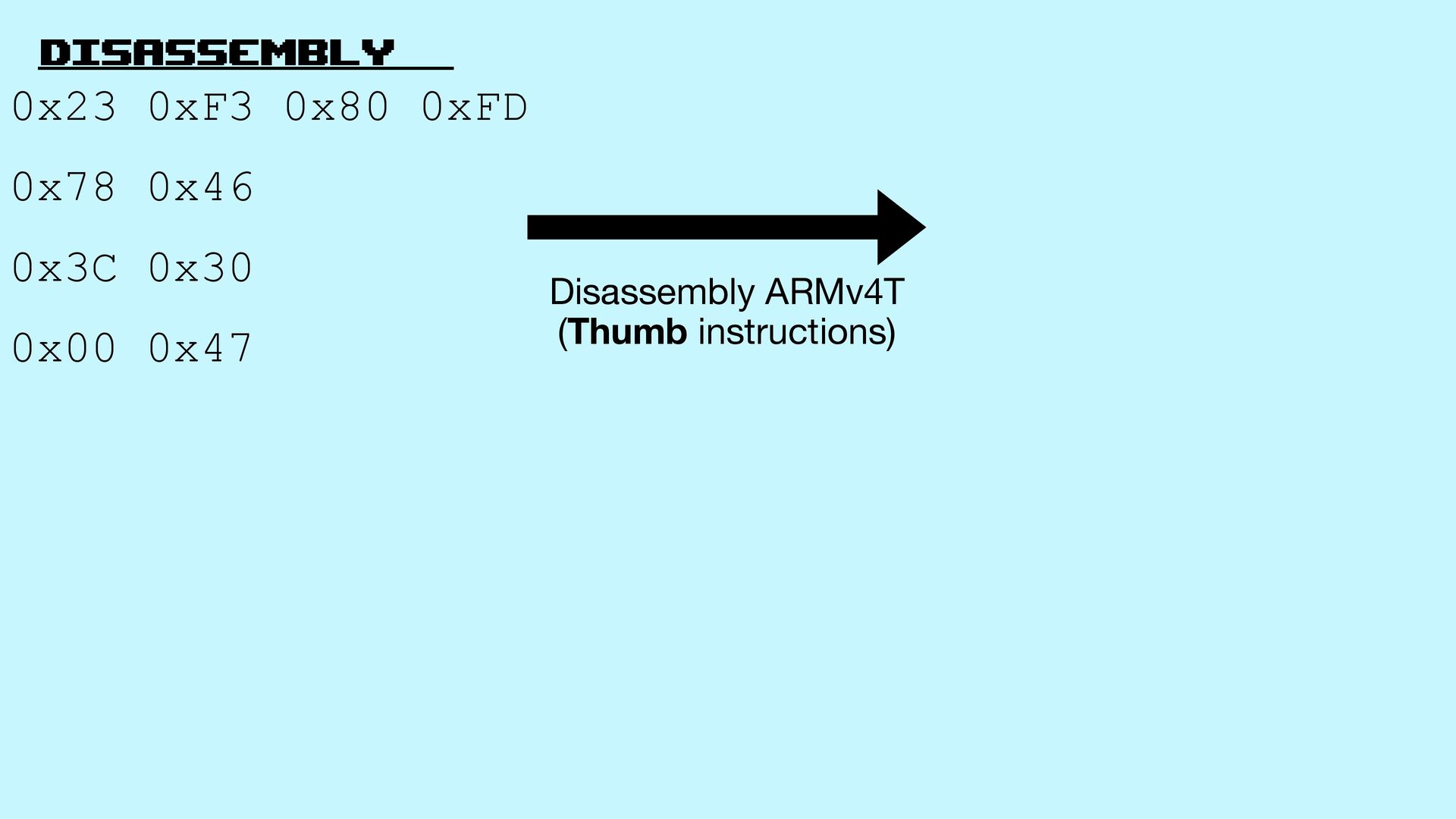 8. Disassembly 0x23 0xF3 0x80 0xFD 0x78 0x46 0x3C 0x30 0x00