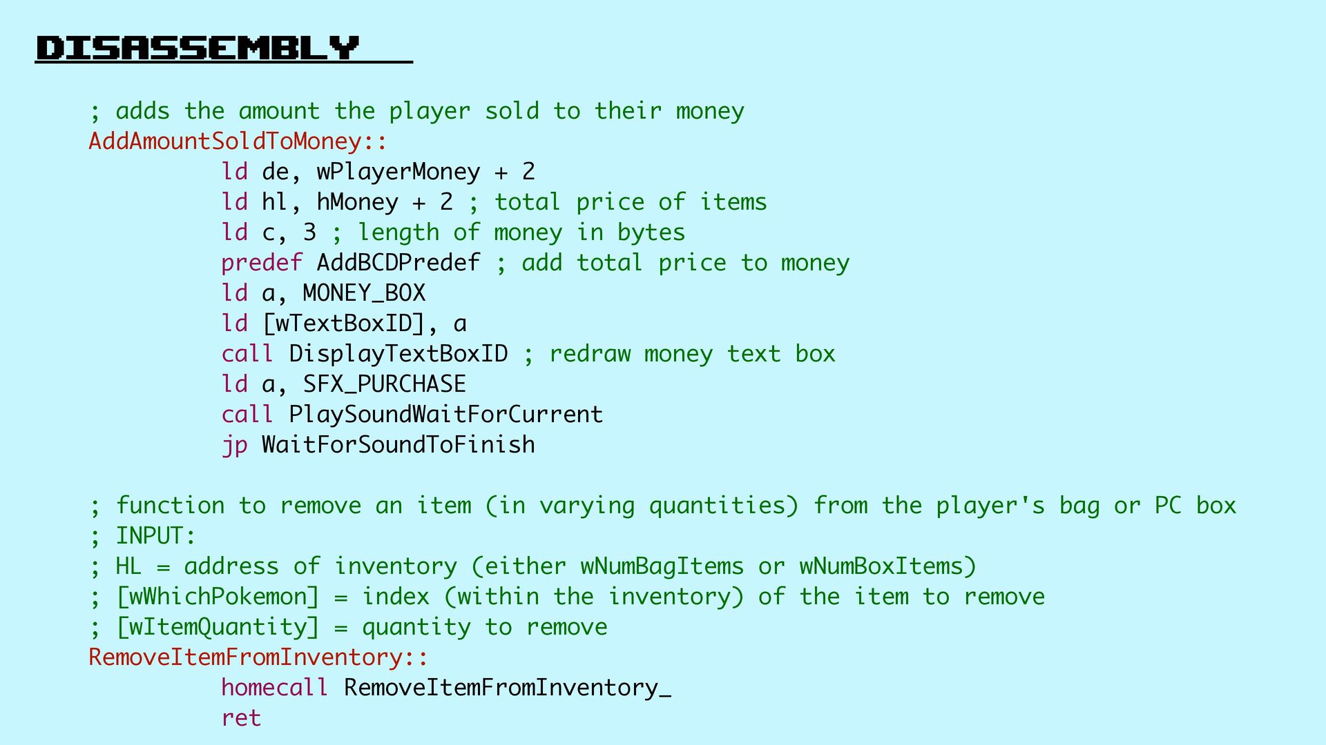 15. Disassembly Rom hacking ; adds the amount the player sold