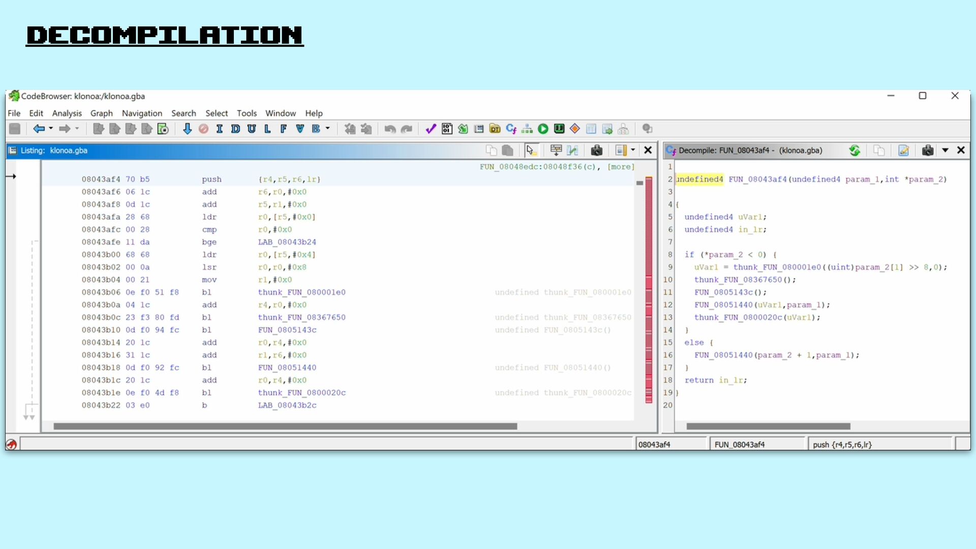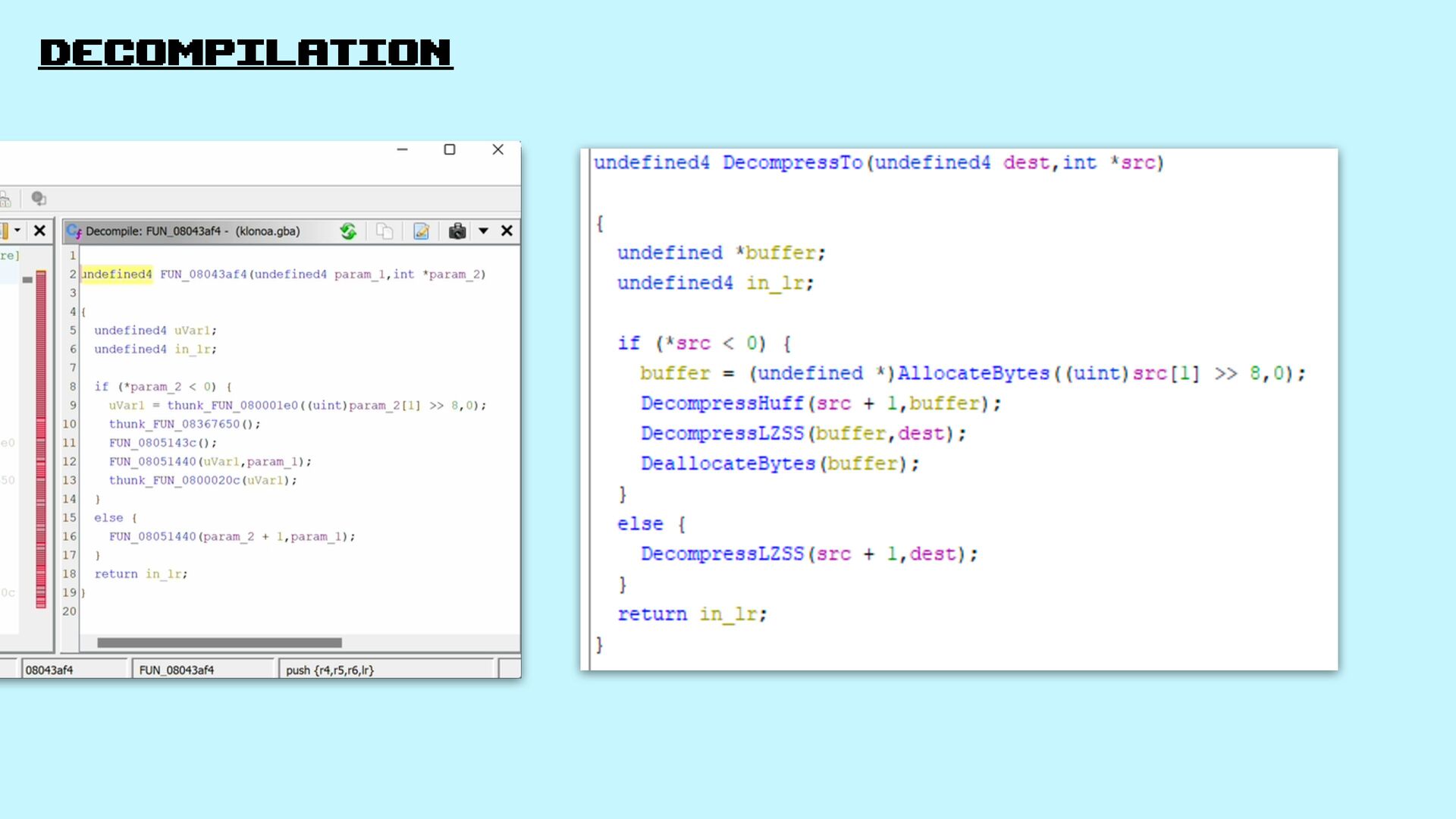 the same binary The decompilation itself is the goal for the project
