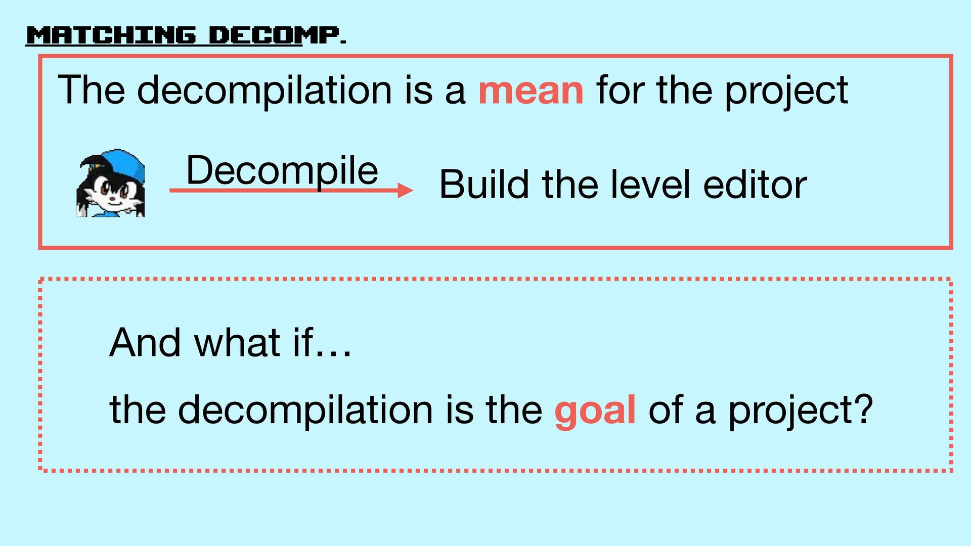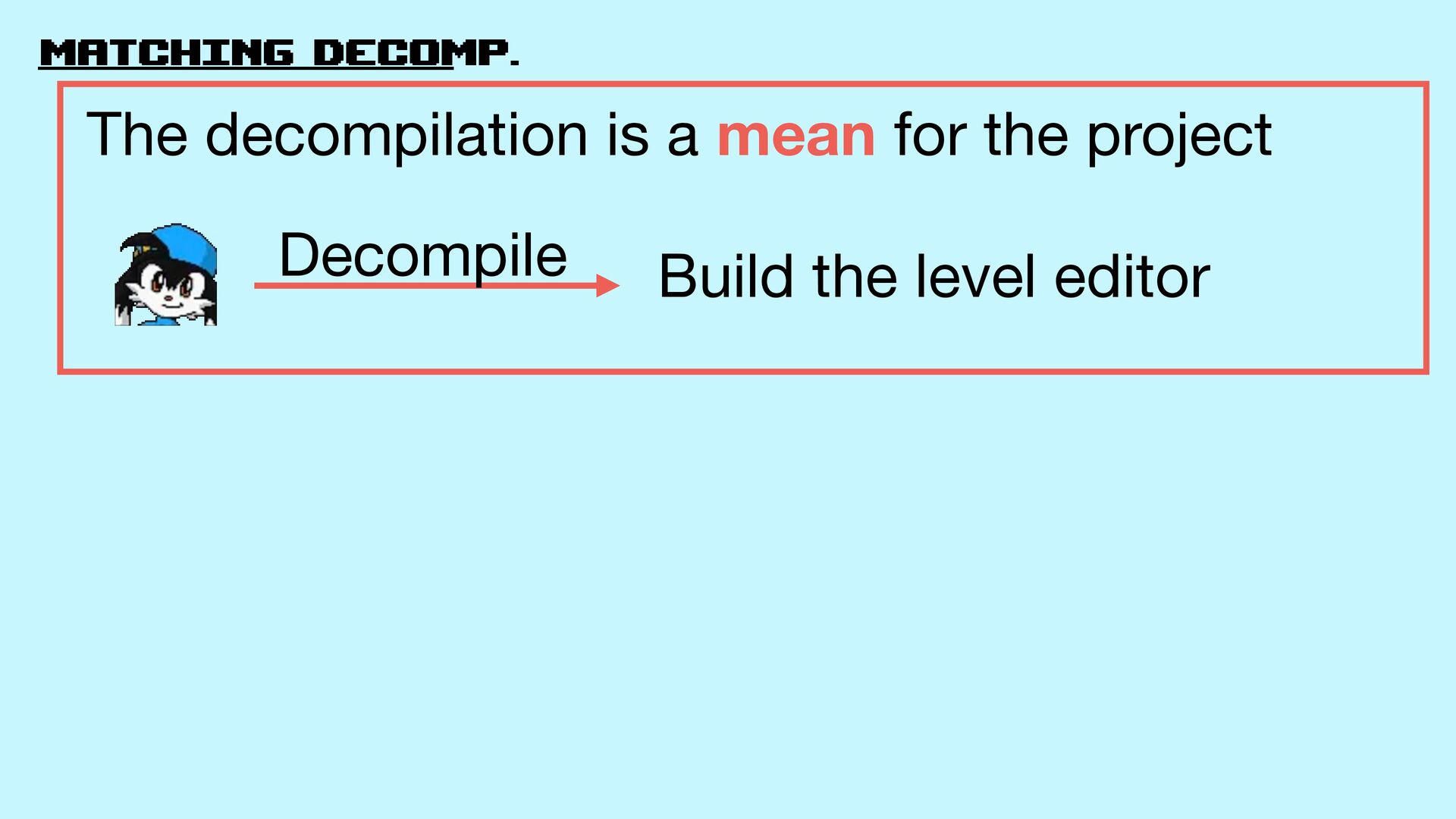 of a project? Build the level editor The decompilation is a mean for the project Decompile