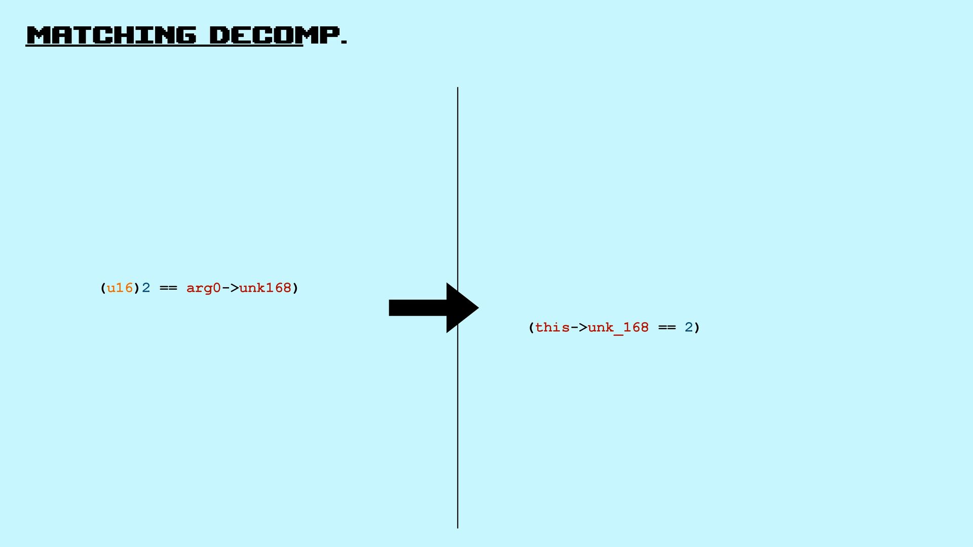 22. matching decomp. Matching decompilation is when the goal is