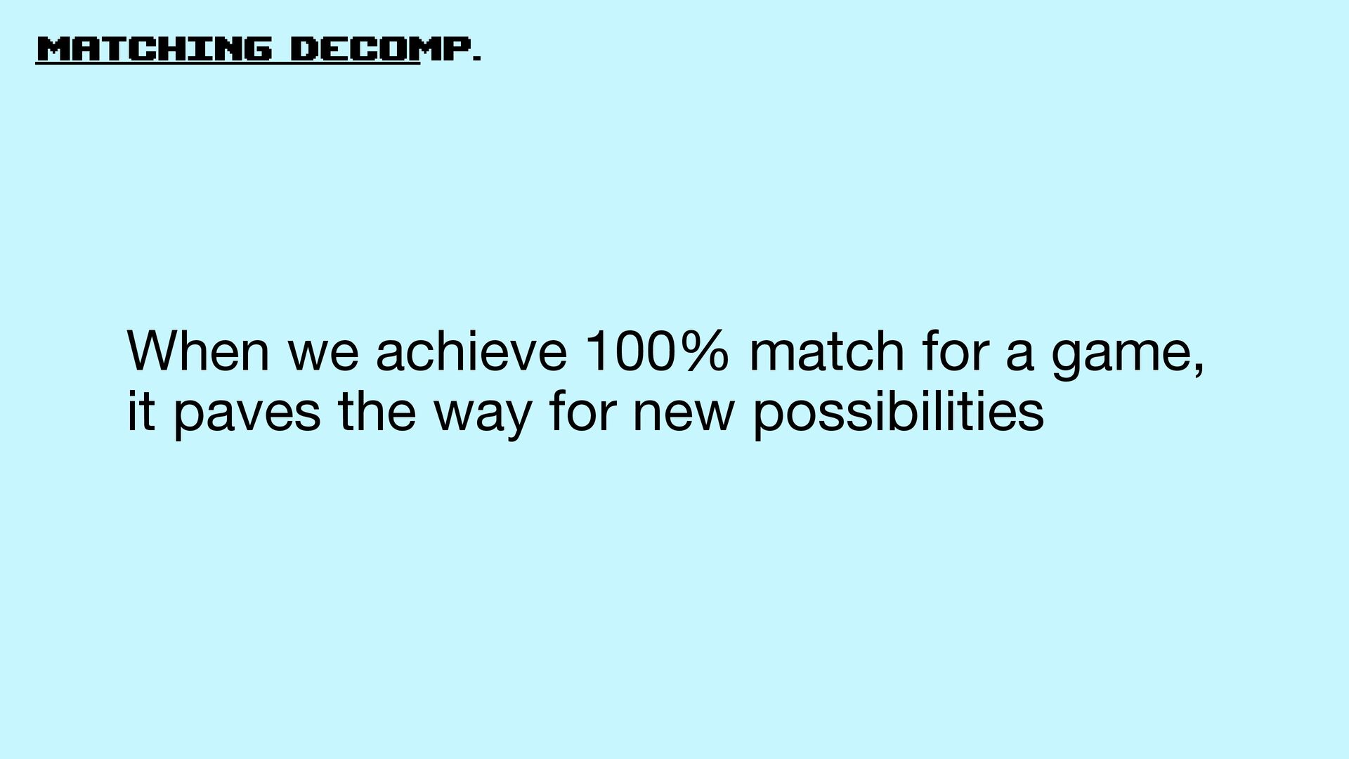 39. matching decomp. beyond When we achieve 100% match for a