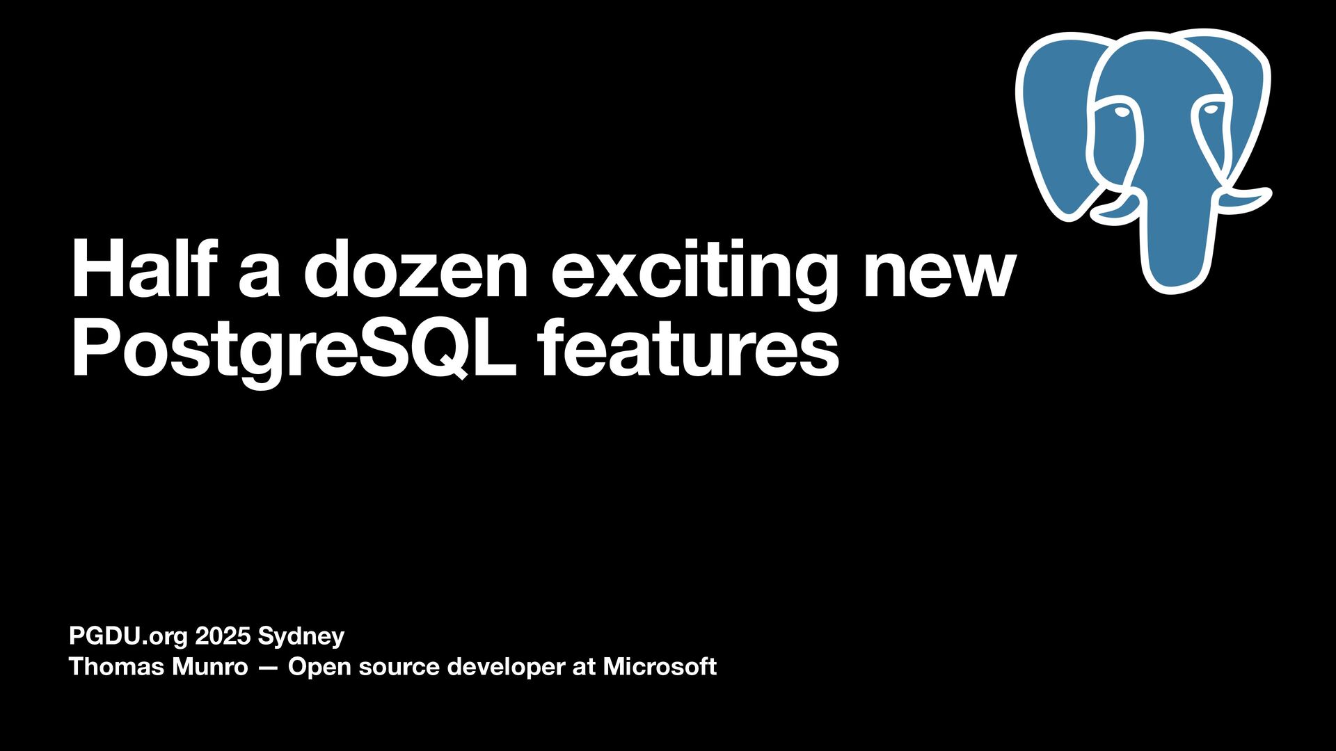 1. Half a dozen exciting new PostgreSQL features PGDU.org 2025 Sydney