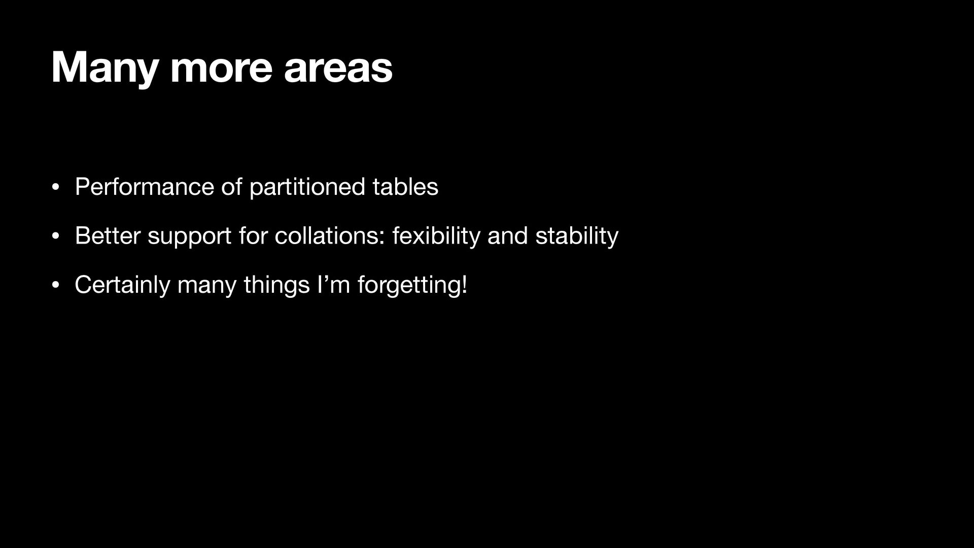 support for collations: fexibility and stability • Certainly many things I’m forgetting!