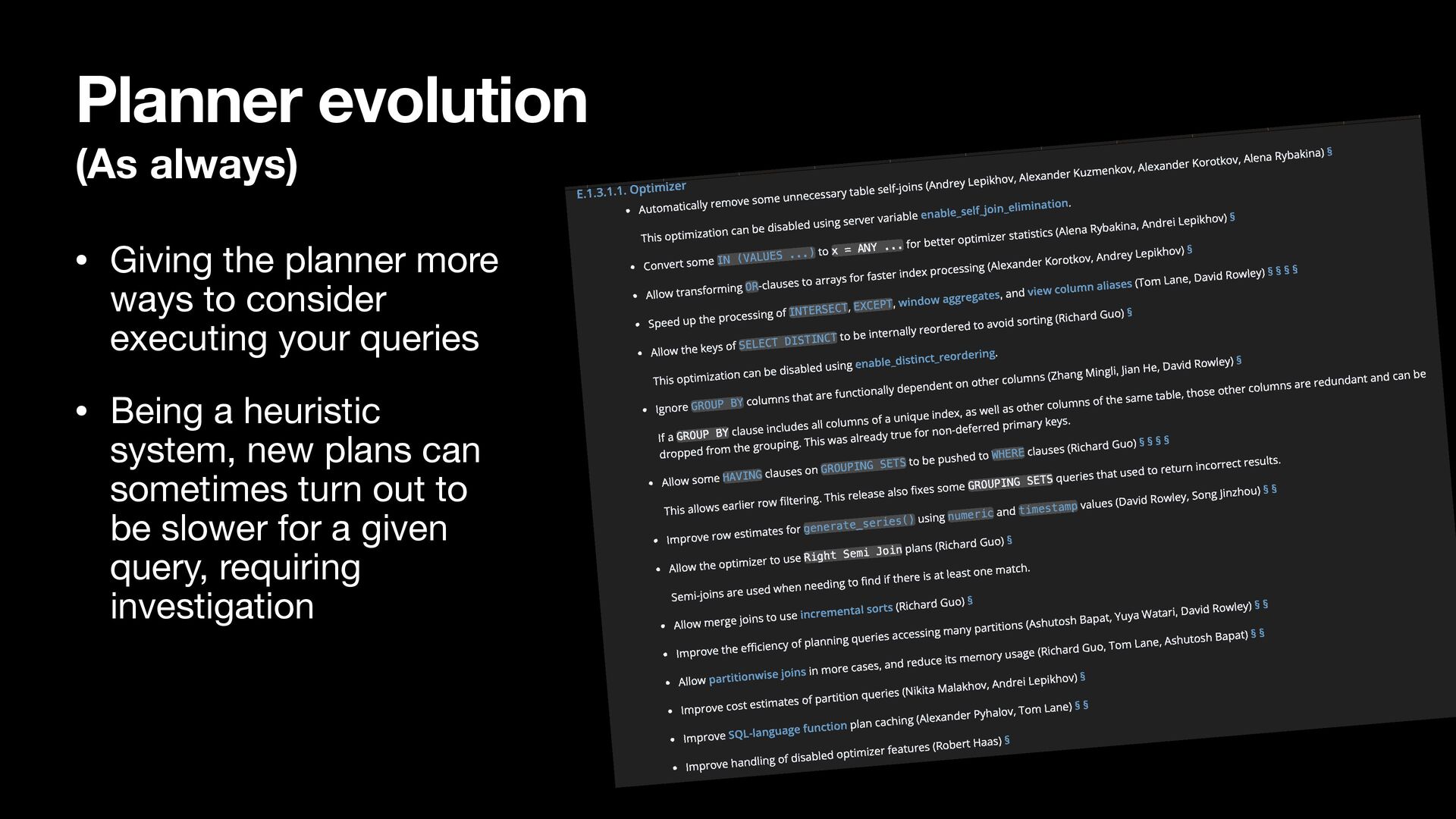 to consider executing your queries • Being a heuristic system, new plans can sometimes turn out to be slower for a given query, requiring investigation