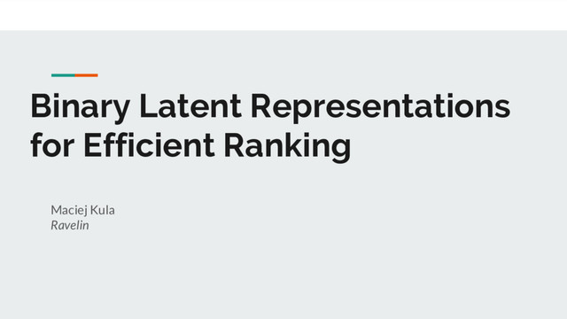 • Negative sampling • BPR loss with tied weights • Adaptive hinge loss with tied weights Binary model: • Embeddings followed by a sign function • Trained by backpropagation