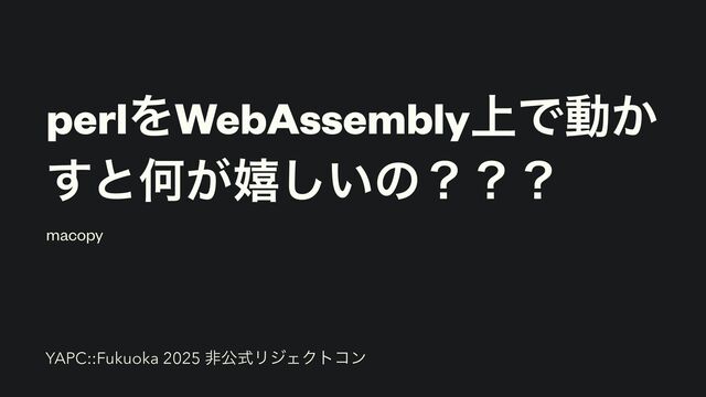 perlΛWebAssembly্Ͱಈ͔ ͢ͱԿ͕خ͍͠ͷʁʁʁ macopy YAPC::Fukuoka 2025 ඇެࣜϦδΣΫτίϯ