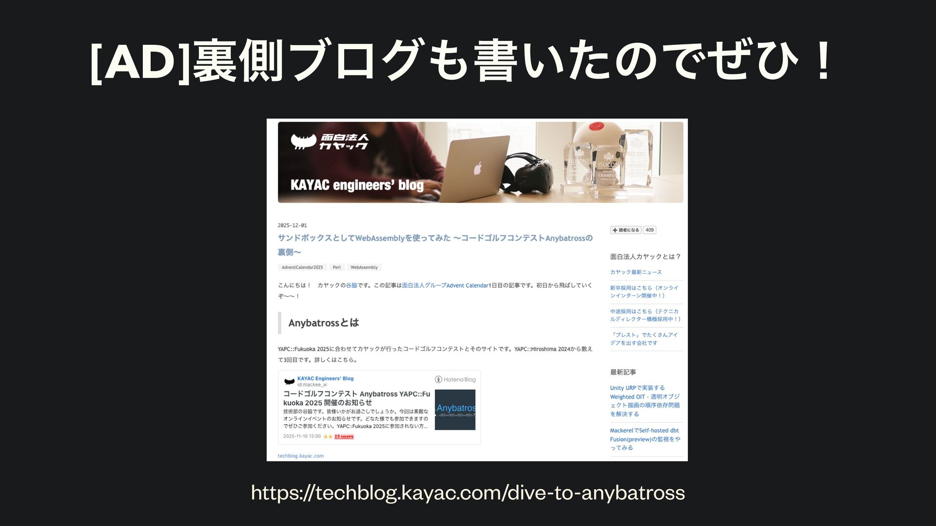 [AD]ཪଆϒϩάॻ͍ͨͷͰͥͻʂ https://techblog.kayac.com/dive-to-anybatross