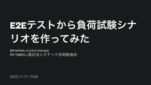 E2Eςετ͔Βෛՙࢼݧγφ ϦΦΛ࡞ͬͯΈͨ @mackee_w a.k.a macopy PR TIMES x ໘ന๏ਓΧϠοΫ߹ಉษڧձ 2022-11-11