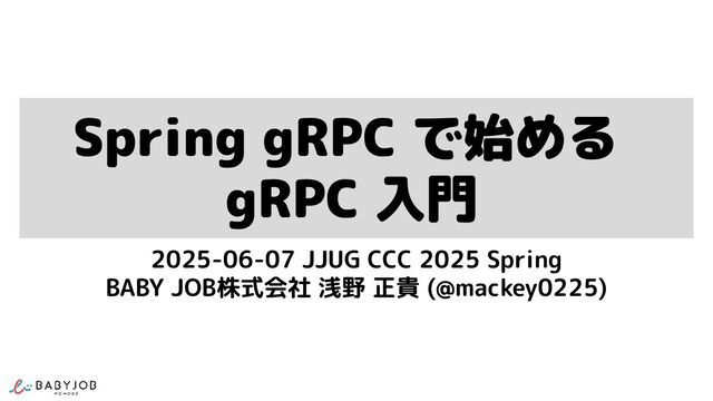 Spring gRPC で始める gRPC 入門 自己紹介 名前:浅野 正貴 所属:BABY JOB株式会社 関ジャバの運営もやってます