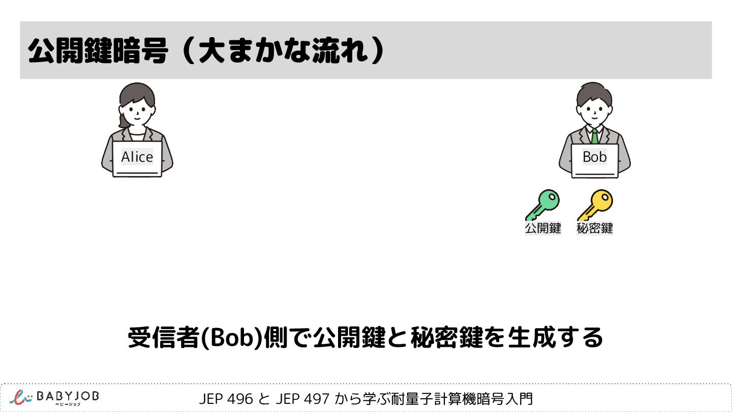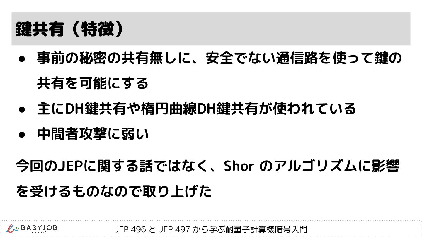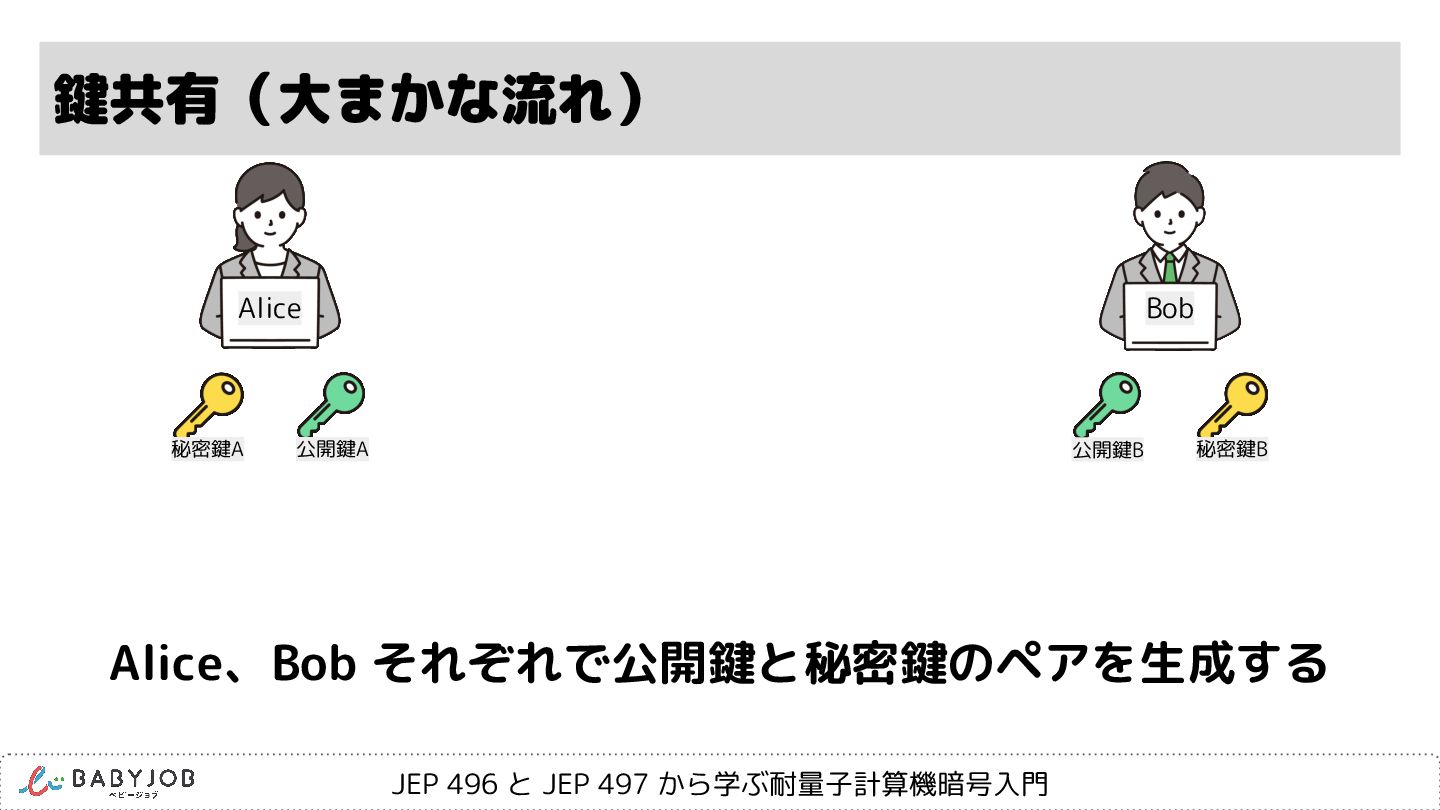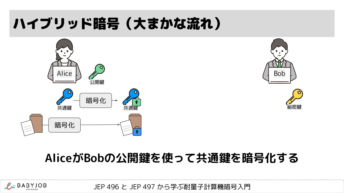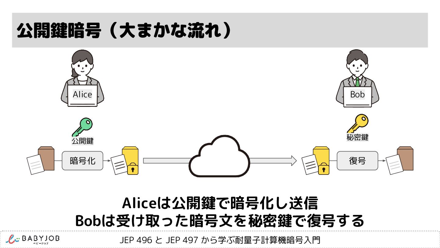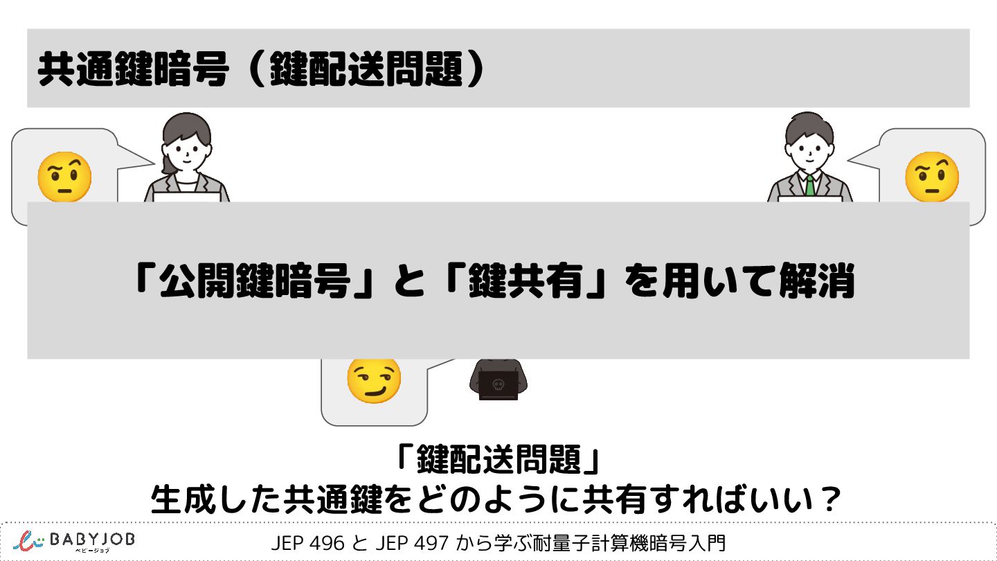 203 ◦ ML-KEM(Module-Lattice-Based Key-Encapsulation Mechanism) ◦ 格子暗号の鍵交換アルゴリズムのCRYSTALS-Kyberがベース • FIPS 204 ◦ ML-DSA(Module-Lattice-Based Digital Signature Algorithm) ◦ 格子暗号の電子署名アルゴリズムのCRYSTALS-Dilithiumがベース • FIPS 205 ◦ SLH-DSA(Stateless Hash-Based Digital Signature Algorithm ◦ ハッシュ関数の電子署名アルゴリズムのSPHINCS+がベース ◦ ML-DSAが脆弱であると判明した場合のバックアップ