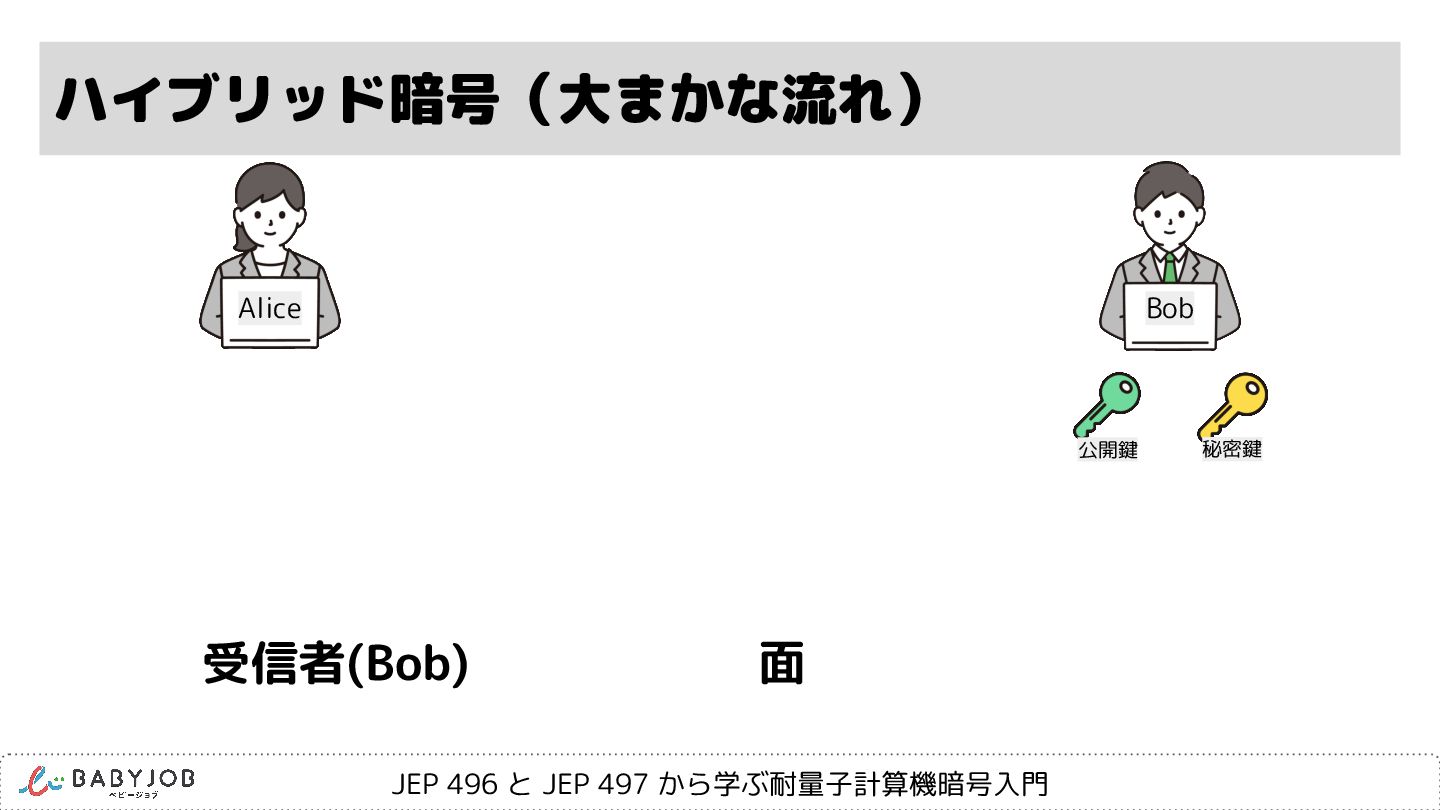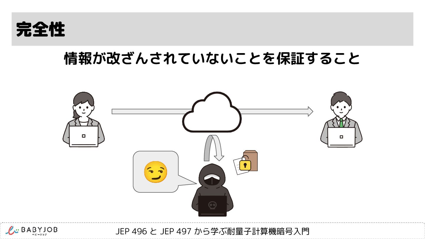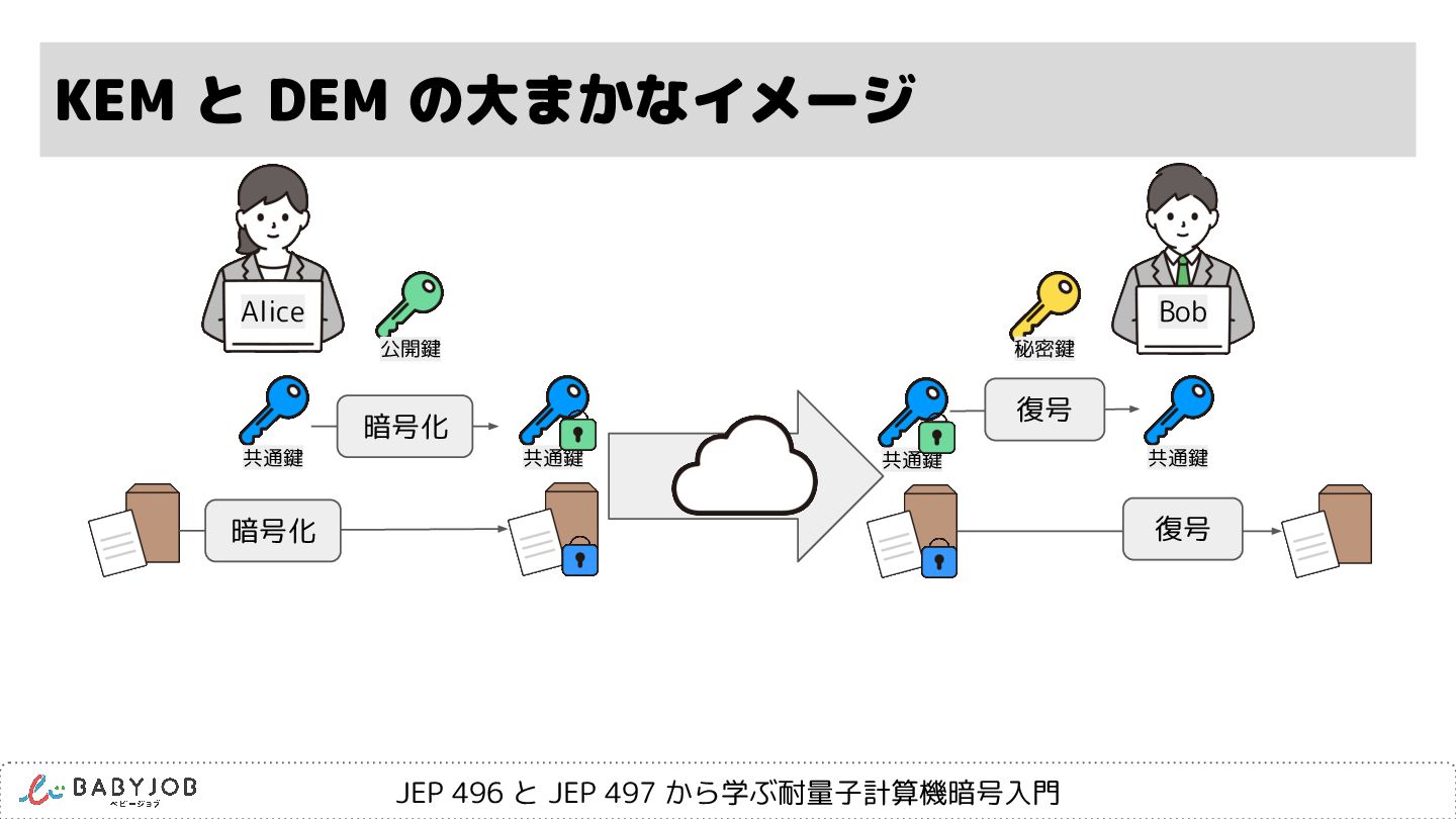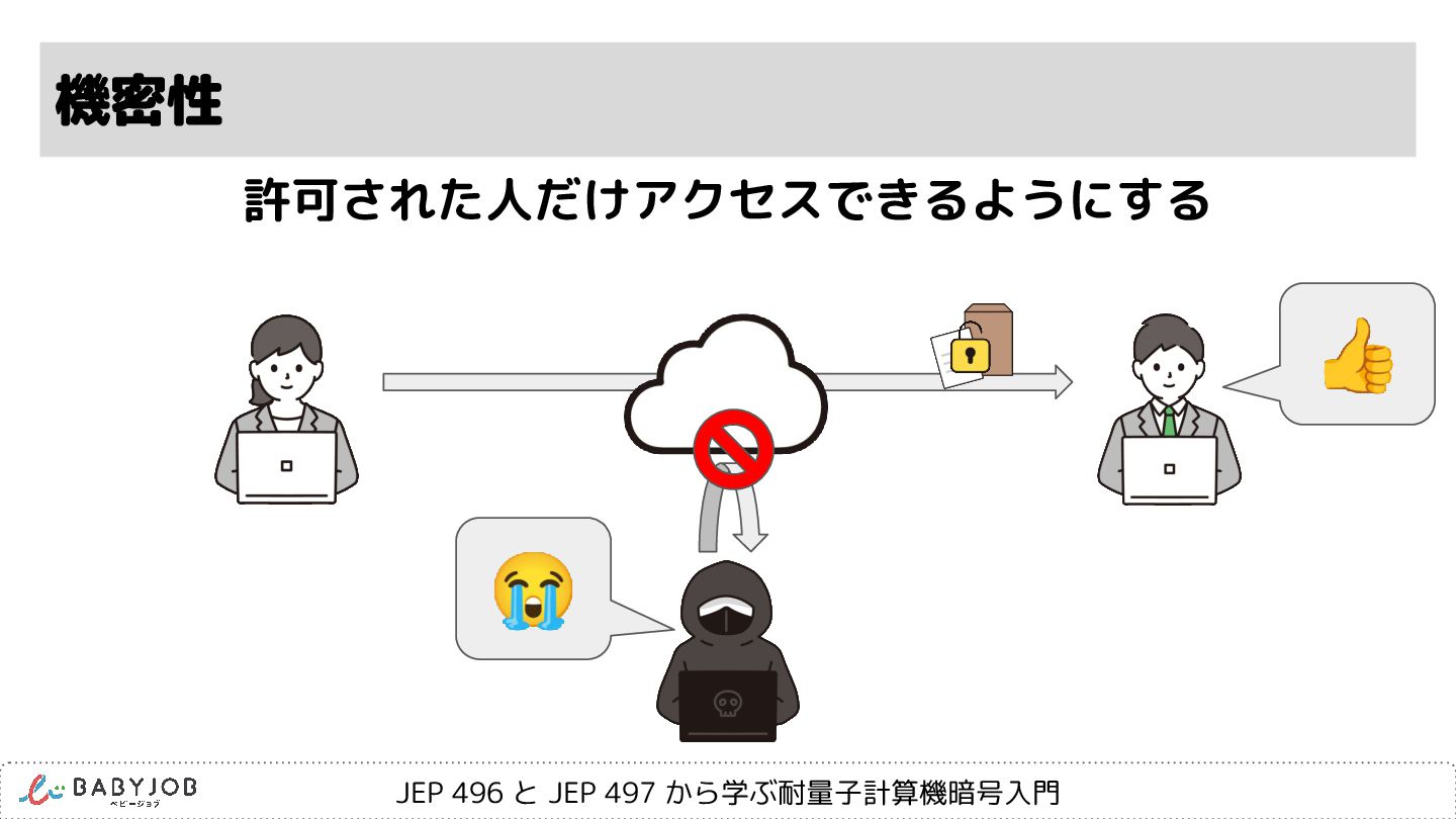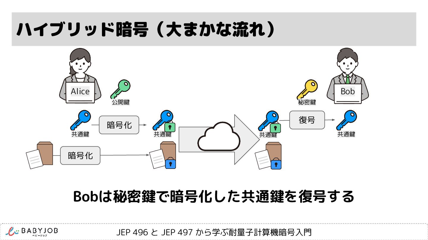 203 ◦ ML-KEM(Module-Lattice-Based Key-Encapsulation Mechanism) ◦ 格子暗号の鍵交換アルゴリズムのCRYSTALS-Kyberがベース • FIPS 204 ◦ ML-DSA(Module-Lattice-Based Digital Signature Algorithm) ◦ 格子暗号の電子署名アルゴリズムのCRYSTALS-Dilithiumがベース • FIPS 205 ◦ SLH-DSA(Stateless Hash-Based Digital Signature Algorithm ◦ ハッシュ関数の電子署名アルゴリズムのSPHINCS+がベース ◦ ML-DSAが脆弱であると判明した場合のバックアップ