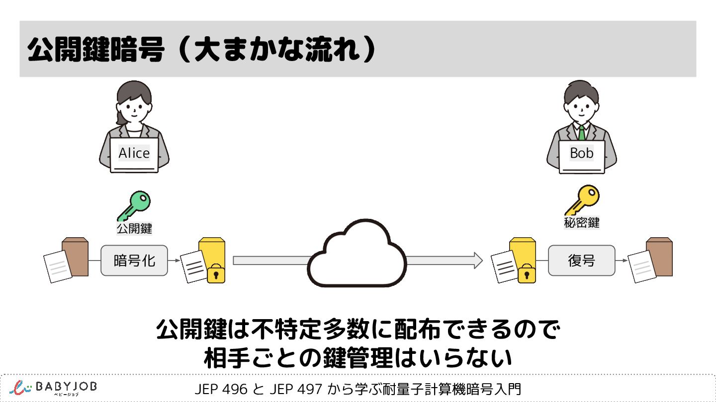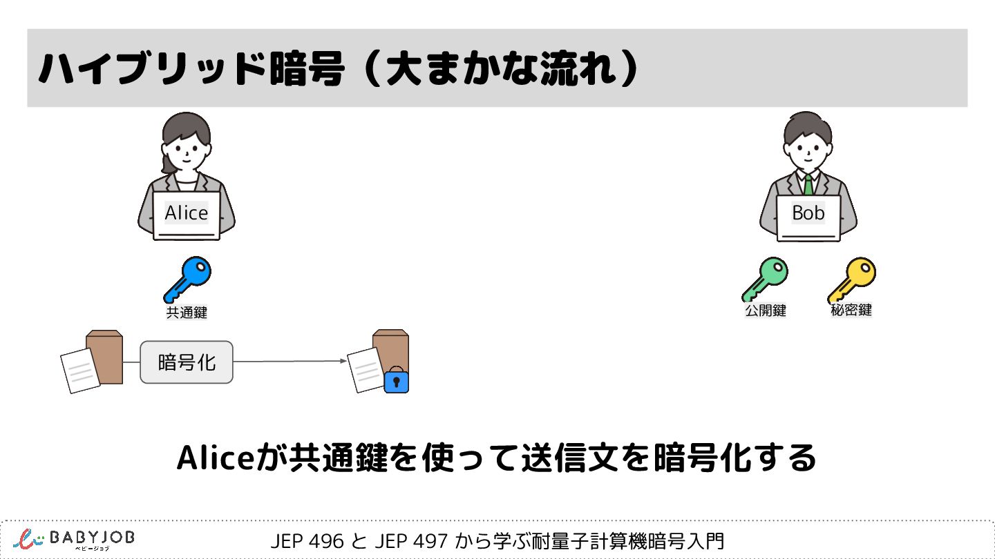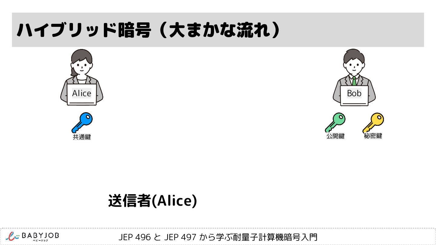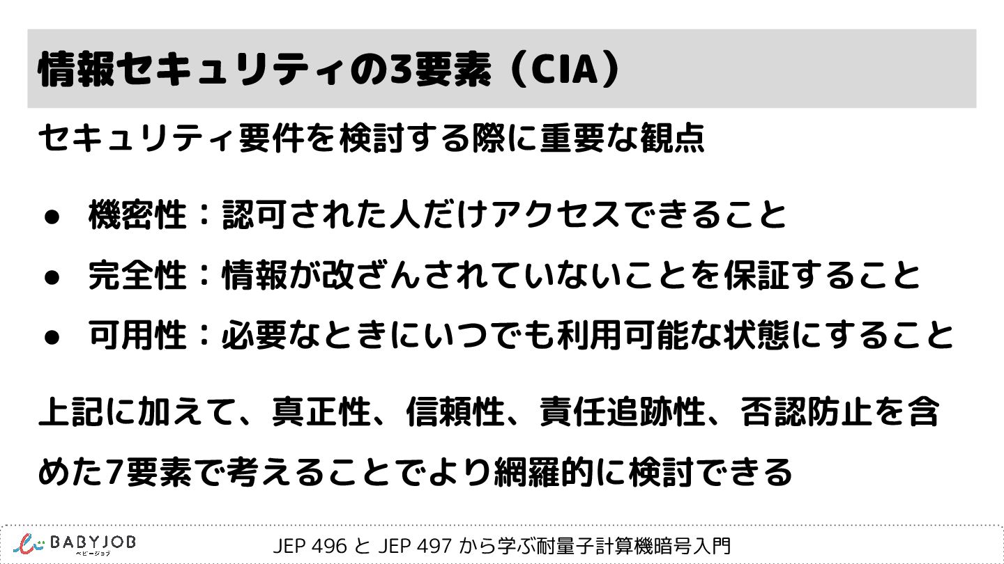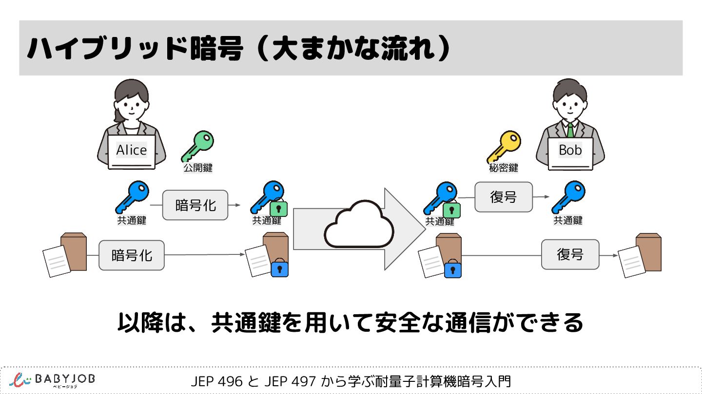 203 ◦ ML-KEM(Module-Lattice-Based Key-Encapsulation Mechanism) ◦ 格子暗号の鍵交換アルゴリズムのCRYSTALS-Kyberがベース • FIPS 204 ◦ ML-DSA(Module-Lattice-Based Digital Signature Algorithm) ◦ 格子暗号の電子署名アルゴリズムのCRYSTALS-Dilithiumがベース • FIPS 205 ◦ SLH-DSA(Stateless Hash-Based Digital Signature Algorithm ◦ ハッシュ関数の電子署名アルゴリズムのSPHINCS+がベース ◦ ML-DSAが脆弱であると判明した場合のバックアップ