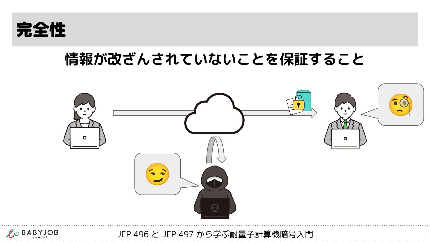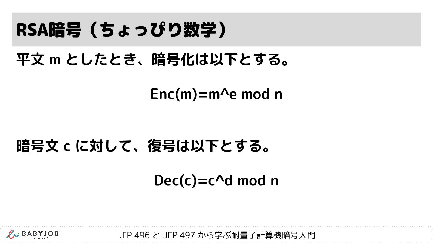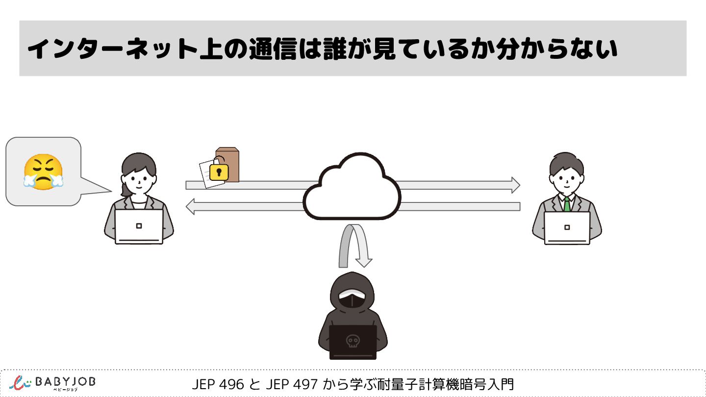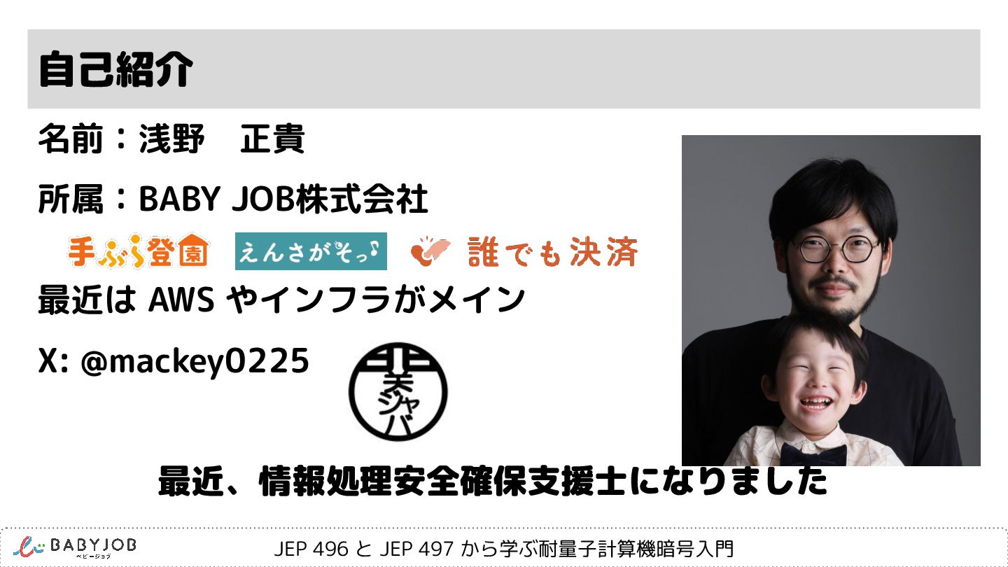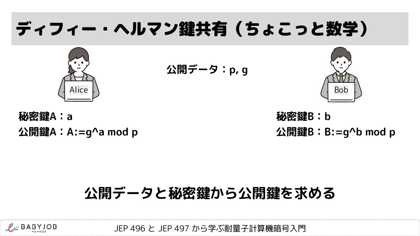 203 ◦ ML-KEM(Module-Lattice-Based Key-Encapsulation Mechanism) ◦ 格子暗号の鍵交換アルゴリズムのCRYSTALS-Kyberがベース • FIPS 204 ◦ ML-DSA(Module-Lattice-Based Digital Signature Algorithm) ◦ 格子暗号の電子署名アルゴリズムのCRYSTALS-Dilithiumがベース • FIPS 205 ◦ SLH-DSA(Stateless Hash-Based Digital Signature Algorithm ◦ ハッシュ関数の電子署名アルゴリズムのSPHINCS+がベース ◦ ML-DSAが脆弱であると判明した場合のバックアップ