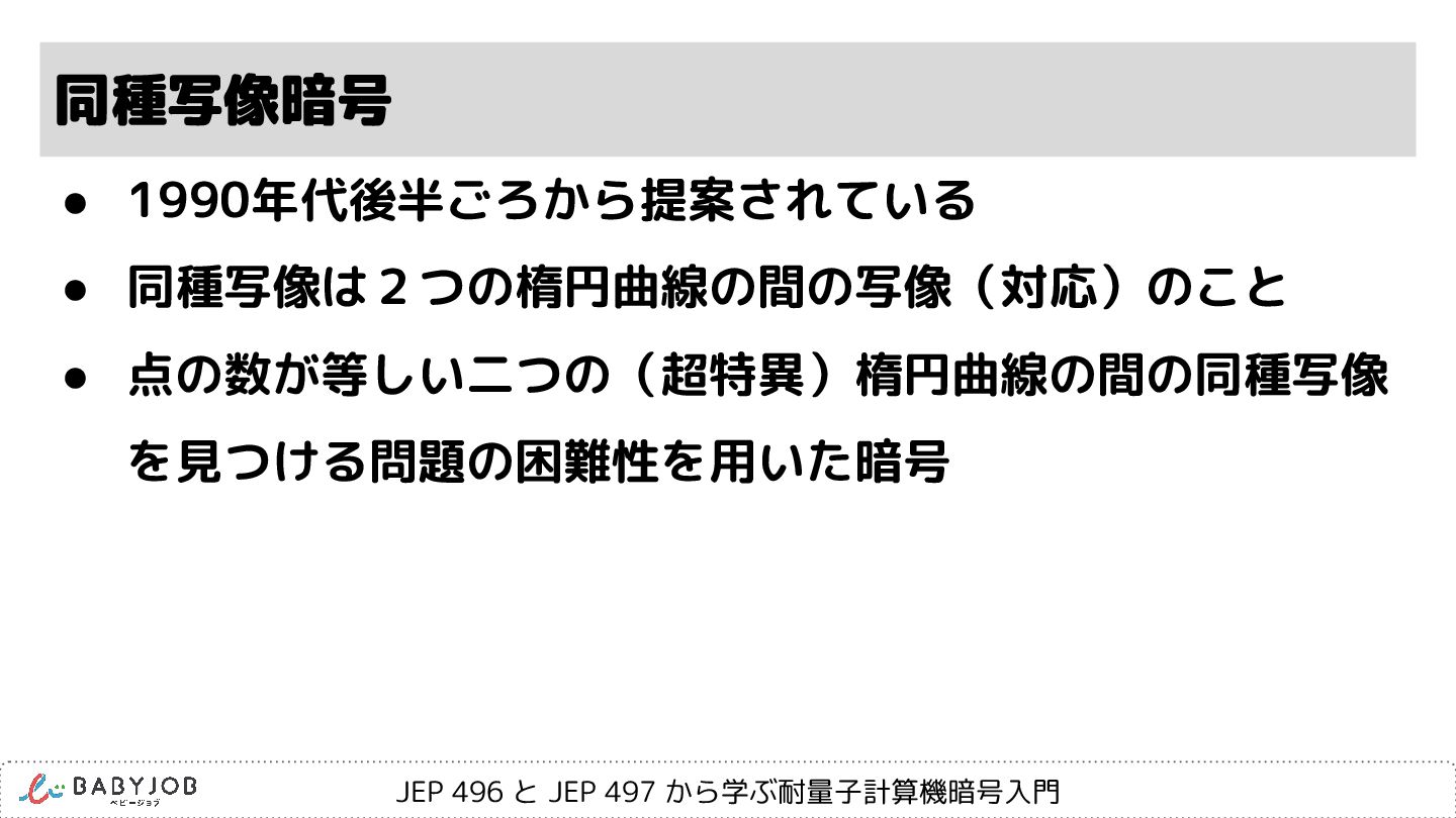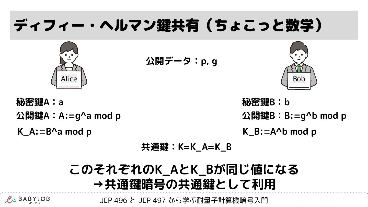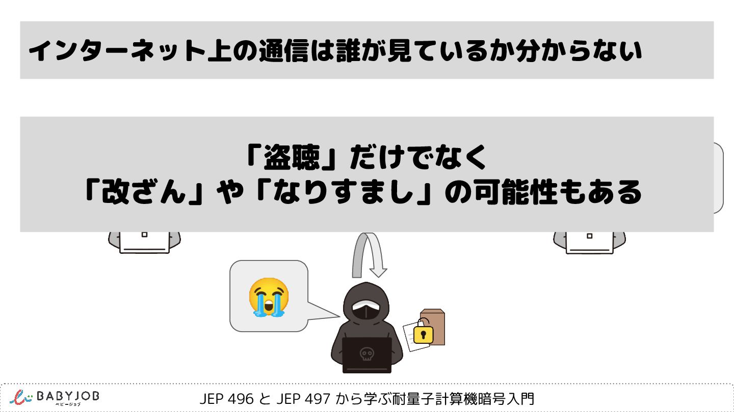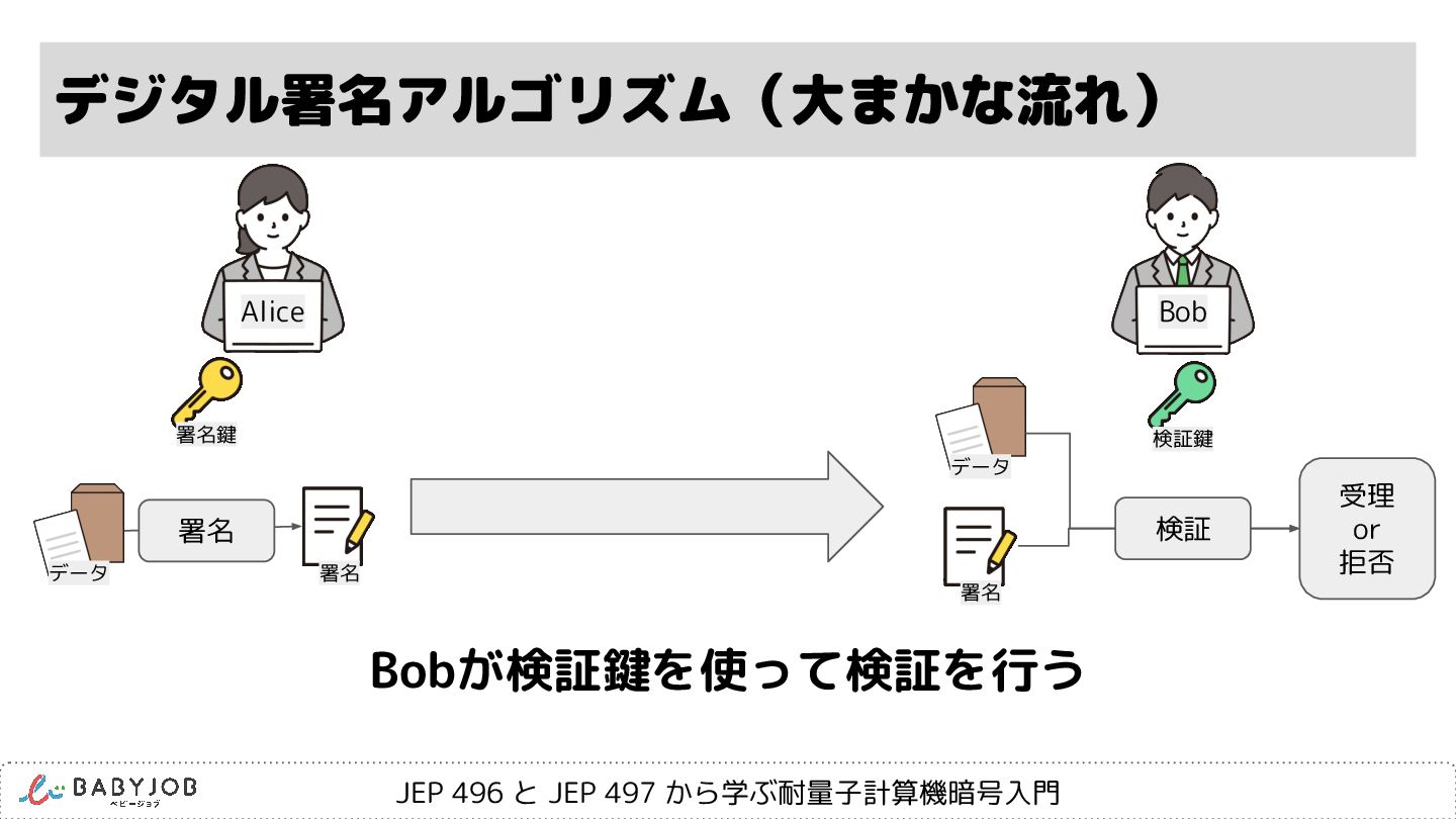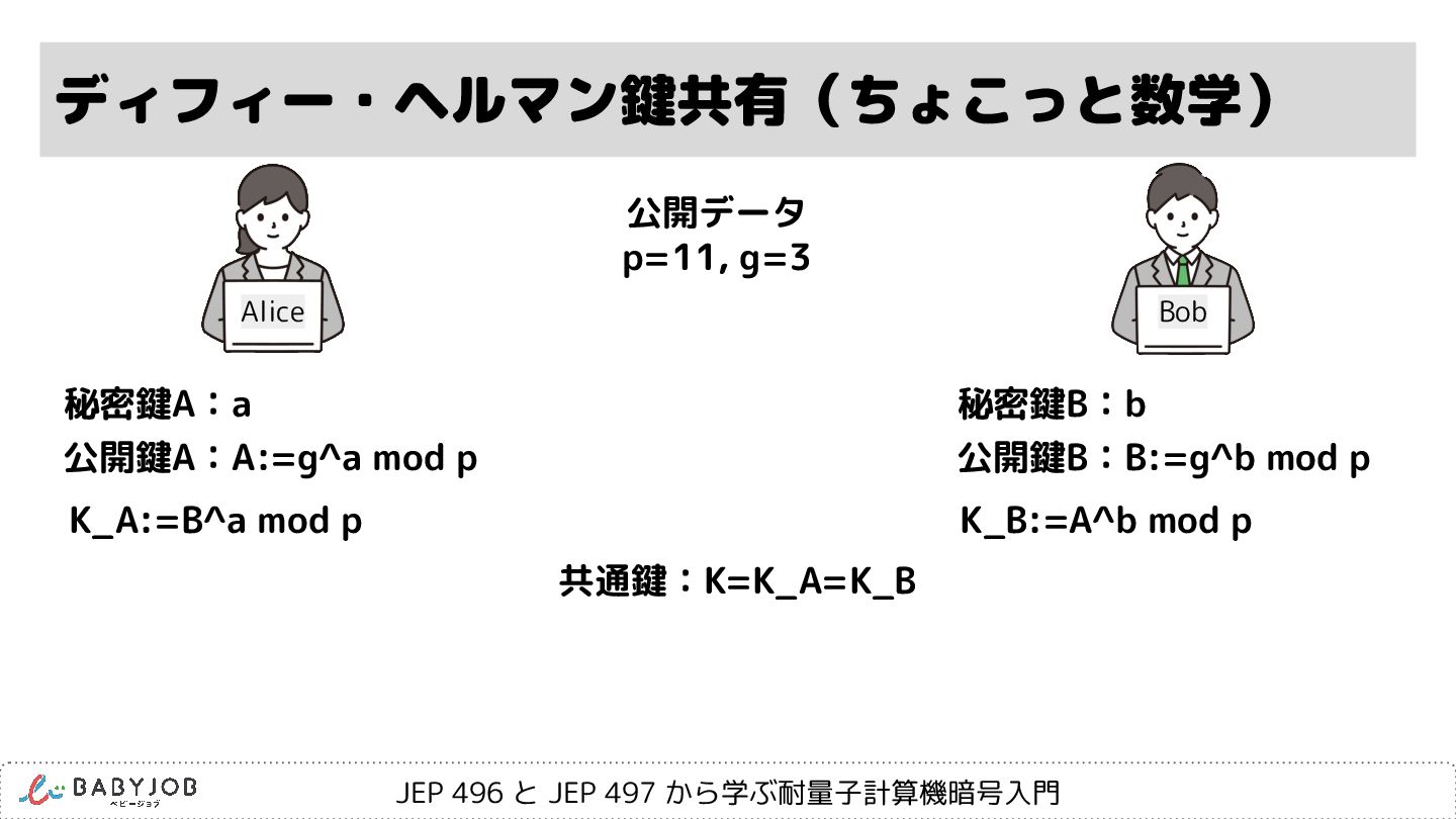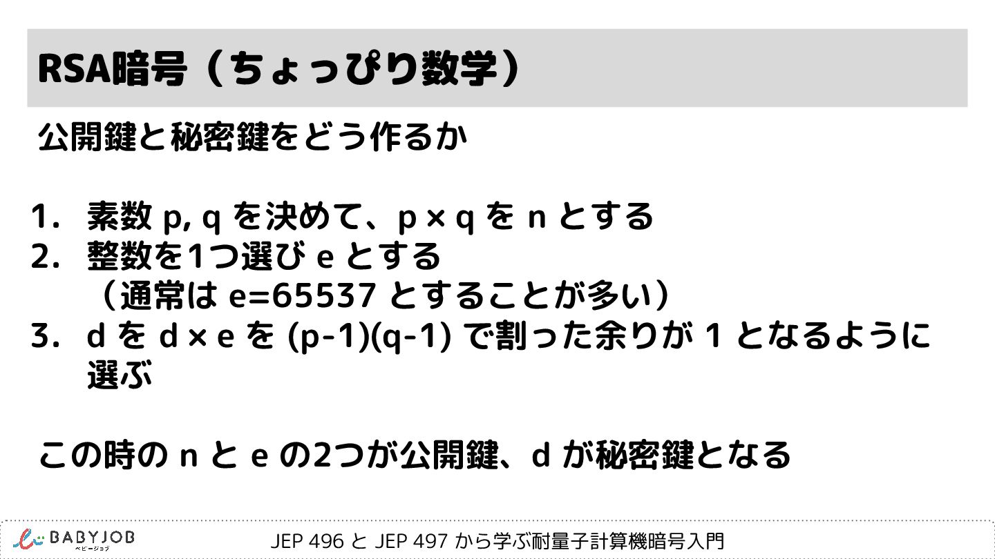 203 ◦ ML-KEM(Module-Lattice-Based Key-Encapsulation Mechanism) ◦ 格子暗号の鍵交換アルゴリズムのCRYSTALS-Kyberがベース • FIPS 204 ◦ ML-DSA(Module-Lattice-Based Digital Signature Algorithm) ◦ 格子暗号の電子署名アルゴリズムのCRYSTALS-Dilithiumがベース • FIPS 205 ◦ SLH-DSA(Stateless Hash-Based Digital Signature Algorithm ◦ ハッシュ関数の電子署名アルゴリズムのSPHINCS+がベース ◦ ML-DSAが脆弱であると判明した場合のバックアップ