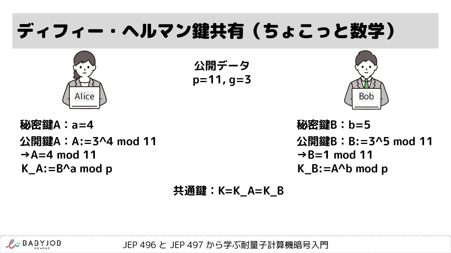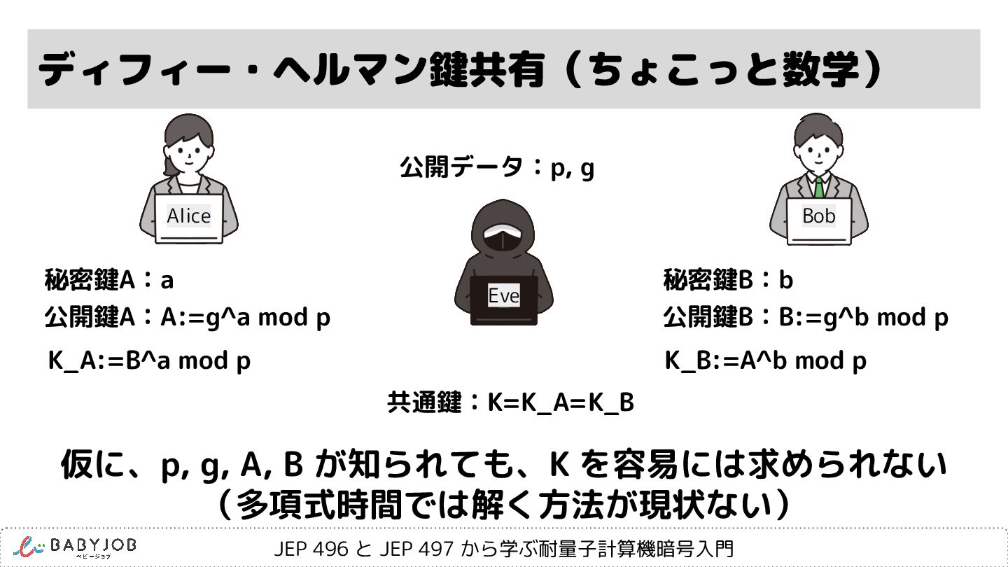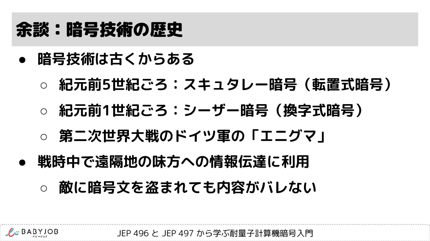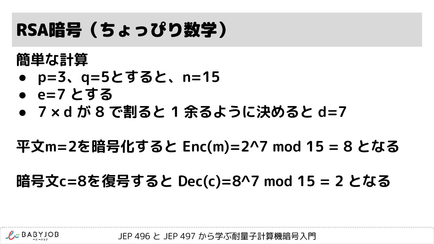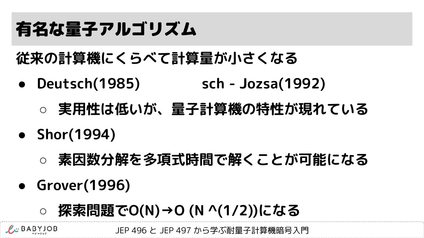 203 ◦ ML-KEM(Module-Lattice-Based Key-Encapsulation Mechanism) ◦ 格子暗号の鍵交換アルゴリズムのCRYSTALS-Kyberがベース • FIPS 204 ◦ ML-DSA(Module-Lattice-Based Digital Signature Algorithm) ◦ 格子暗号の電子署名アルゴリズムのCRYSTALS-Dilithiumがベース • FIPS 205 ◦ SLH-DSA(Stateless Hash-Based Digital Signature Algorithm ◦ ハッシュ関数の電子署名アルゴリズムのSPHINCS+がベース ◦ ML-DSAが脆弱であると判明した場合のバックアップ