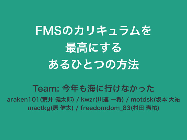 '.4ͷΧϦΩϡϥϜΛ ࠷ߴʹ͢Δ ͋Δͻͱͭͷํ๏ 5FBNࠓւʹߦ͚ͳ͔ͬͨ BSBLFO ߥҪ݈ଠ LX[S ࿈Ұক NPUETL ࡔຊେ༞