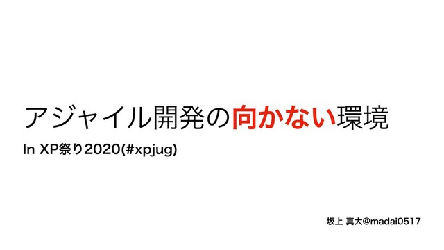 - 自己紹介 - 今回の発表主旨 - アジャイルソフトウェア開発宣言のおさらい - アンチ・アジャイルソフトウェア開発宣言 - アジャイルソフトウェア開発の向かない環境 - 請負契約 - 既存システムのリプレイス - 正確性、安全性、信頼性が重視されるプロジェクト