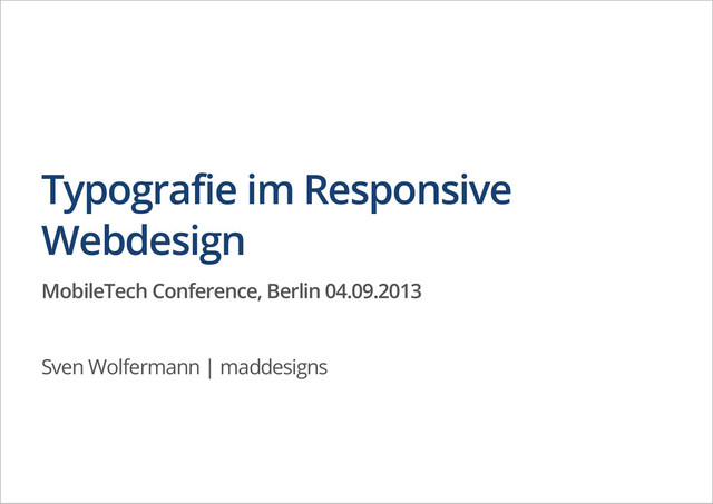 Ein großer Bestandteil von Webseiten ist nach wie vor Text. Die weitreichende Unterstützung von Webfonts in modernen Browsern gibt uns die Möglichkeit, Schriftarten unserer Wahl für die Auszeichnung von Text zu nutzen. Allerdings gibt es auch Fallen bei der Verwendung von Webfonts, die gerade auf mobilen Geräten auftreten können. Lösungswege und Tipps für die Verwendung von Schrift im Responsive Webdesign. Zudem zeigt der Vortrag neue Möglichkeiten in CSS3.