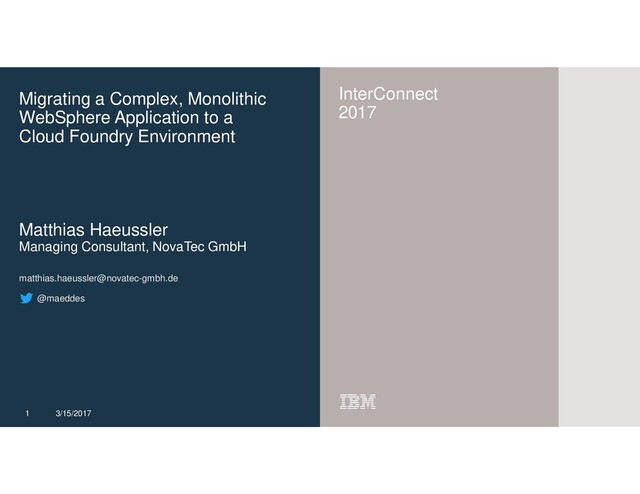 1. InterConnect 2017 Migrating a Complex, Monolithic WebSphere Application to a