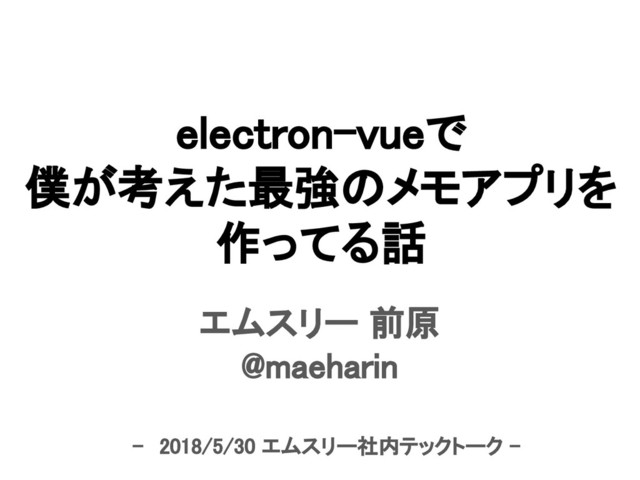 electron-vueで 僕が考えた最強のメモアプリを 作ってる話 エムスリー 前原 @maeharin - 2018/5/30 エムスリー社内テックトーク -