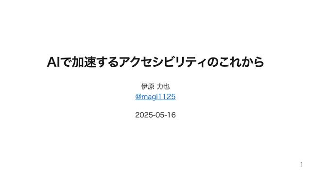 AIで加速するアクセシビリティのこれから 伊原 力也 @magi1125 2025-05-16 1