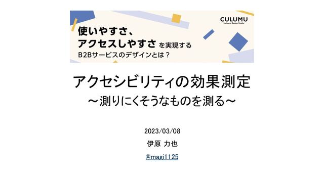アクセシビリティの効果測定 〜測りにくそうなものを測る〜 2023/03/08 伊原 力也 @magi1125