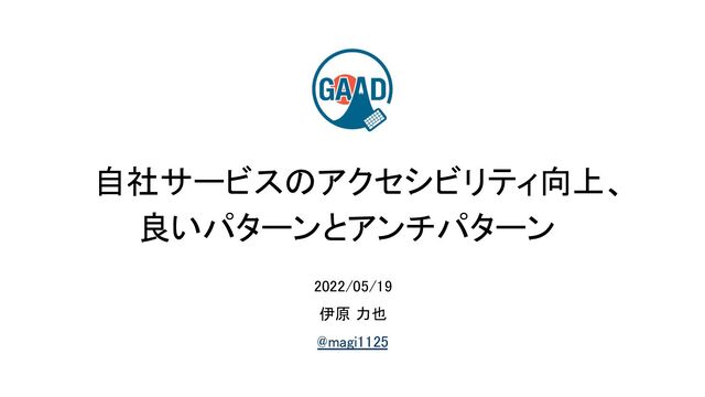 自社サービスのアクセシビリティ向上、 良いパターンとアンチパターン 2022/05/19 伊原 力也 @magi1125