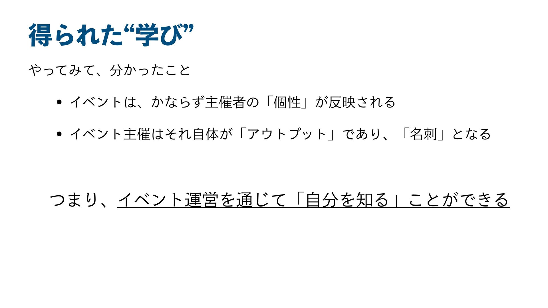 ಘΒΕͨlֶͼz ͬͯΈͯɺ͔ͬͨ͜ͱ w Πϕϯτɺ͔ͳΒͣओ࠵ऀͷʮݸੑʯ͕ө͞ΕΔ w Πϕϯτओ࠵ͦΕࣗମ͕ʮΞτϓοτʯͰ͋Γɺʮ໊ʯͱͳΔ ͭ·ΓɺΠϕϯτӡӦΛ௨ͯ͡ʮࣗΛΔʯ͜ͱ͕Ͱ͖Δ