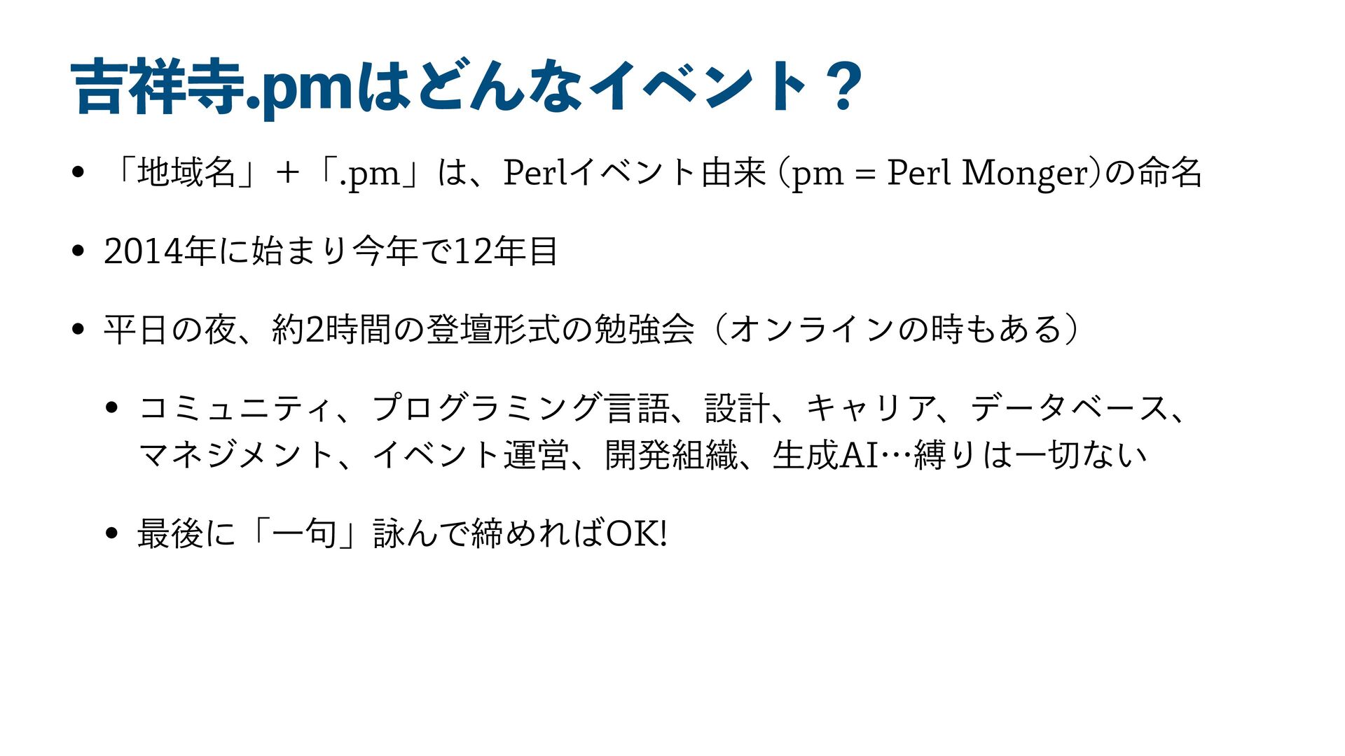 「吉祥寺.pm」というIT勉強会を 10年間続けてきた話