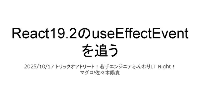 ※2025/10/21資料微修正 22ページ目以降のuseEffectEventのuseEffectの依存配列に余分なイベントハンドラが入っていたので削除。